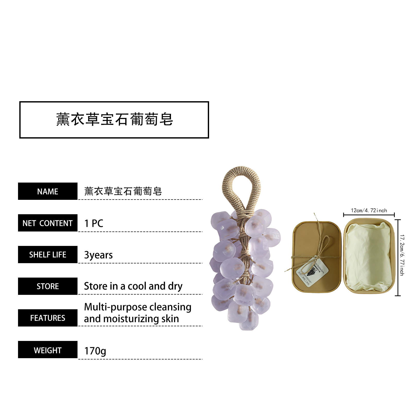 | 产品名称 | 薰衣草宝石葡萄皂 |