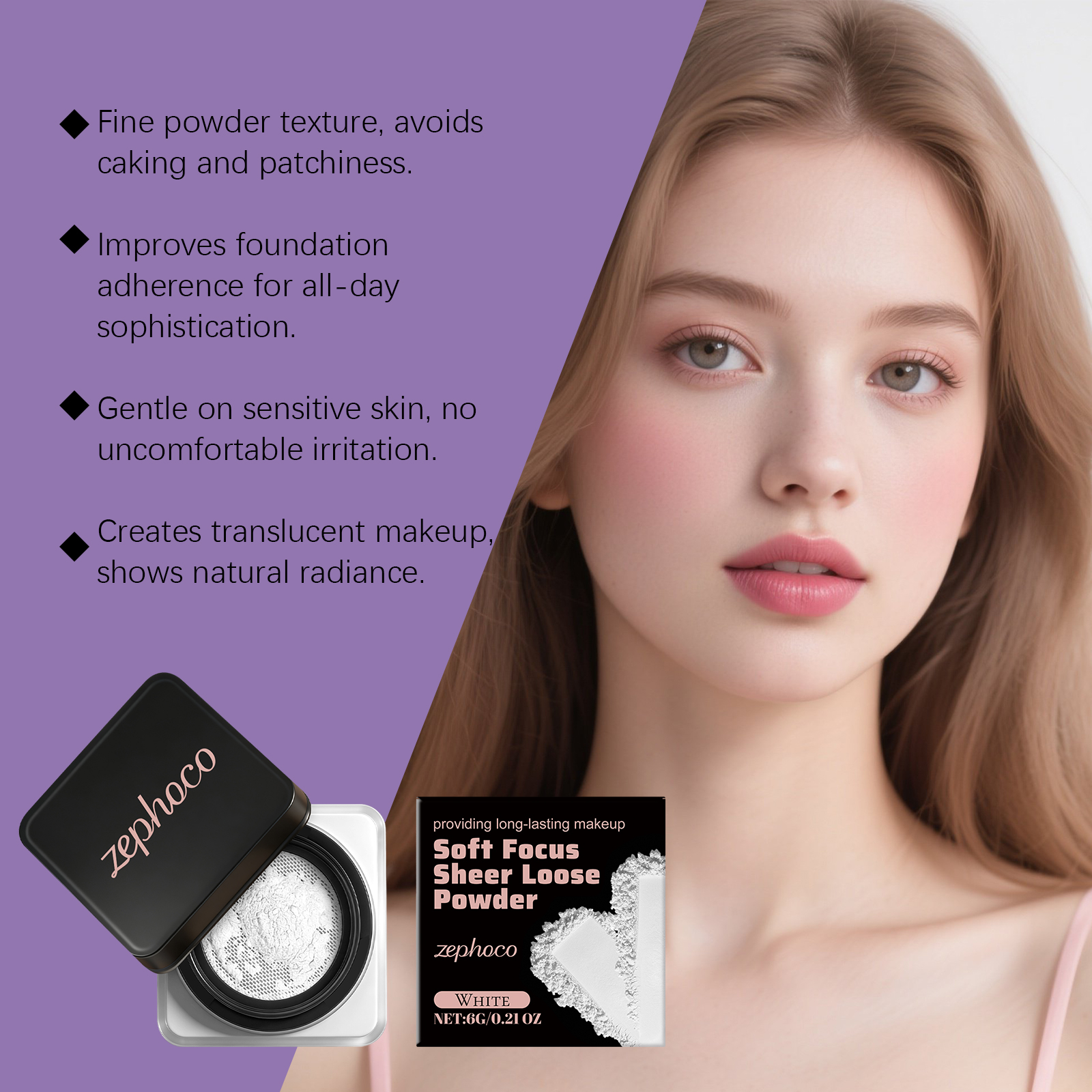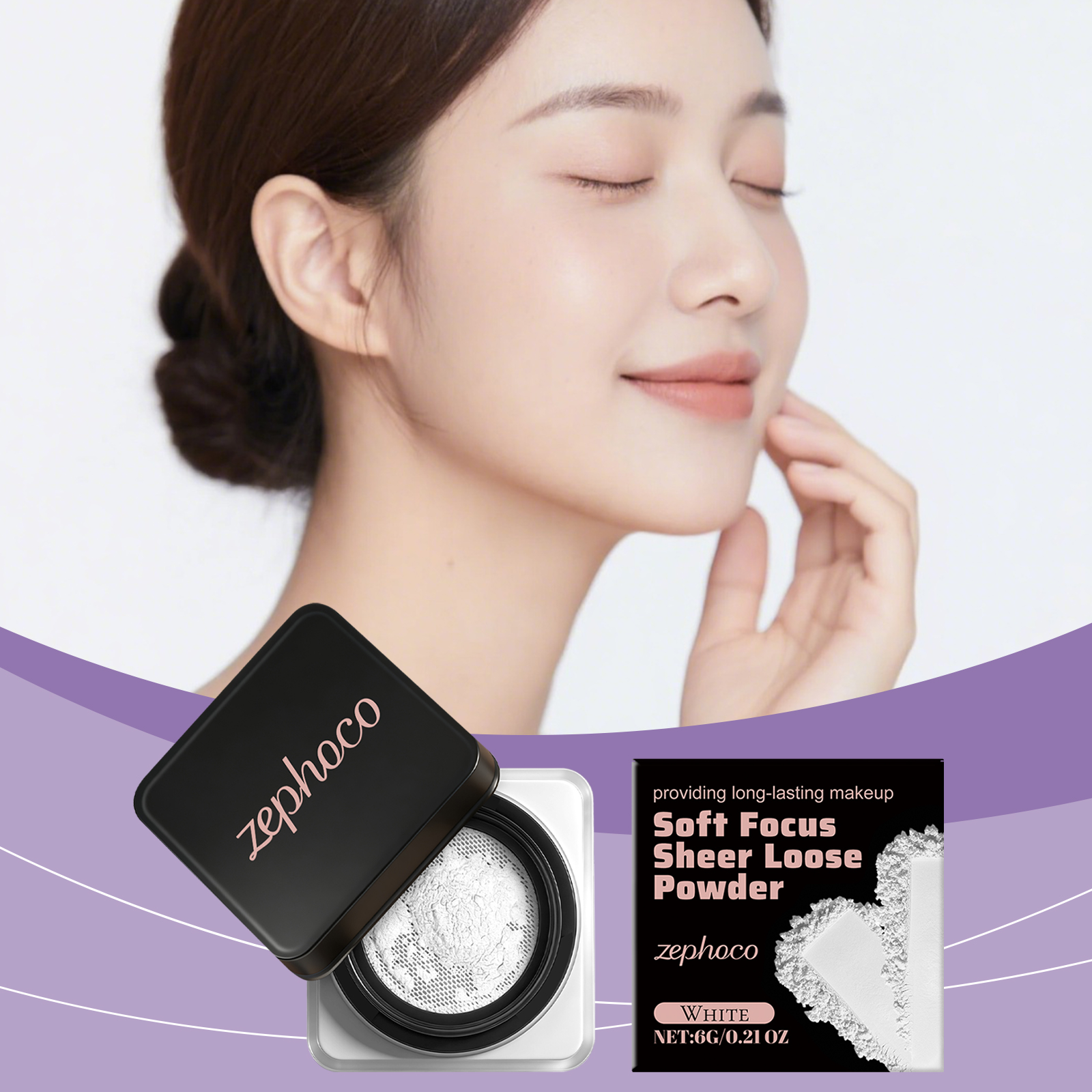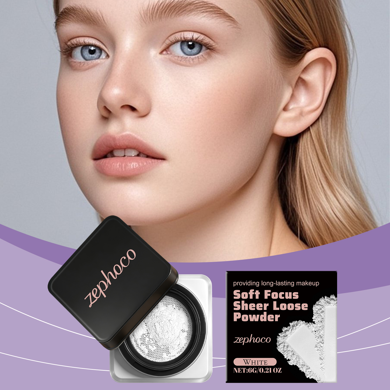 zephoco White Soft, Soft, Clear And Loose Powder Is Naturally Long-Lasting, Light And Adherent, Not Easy To Smudge, And Has A Clear And Transparent Makeup Effect