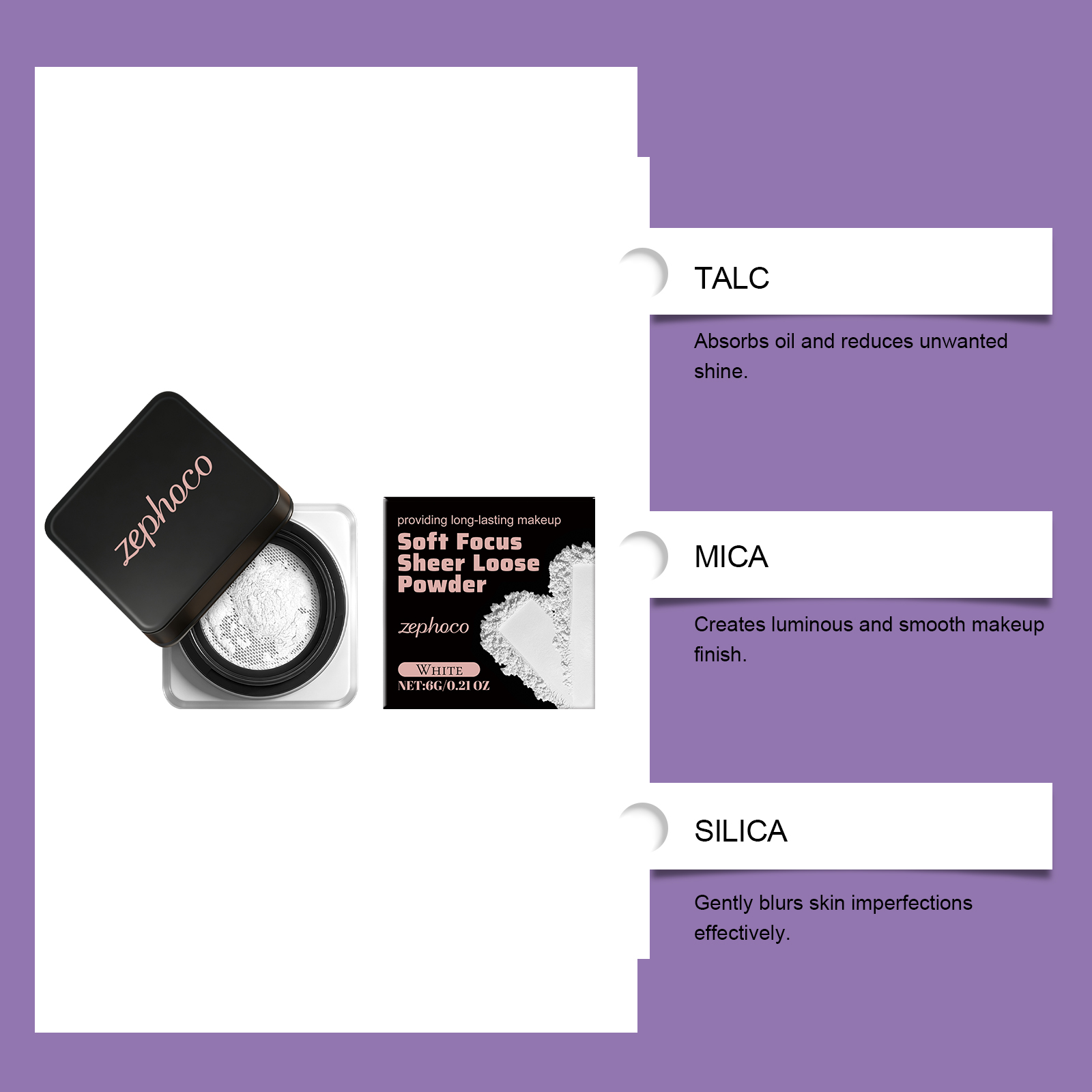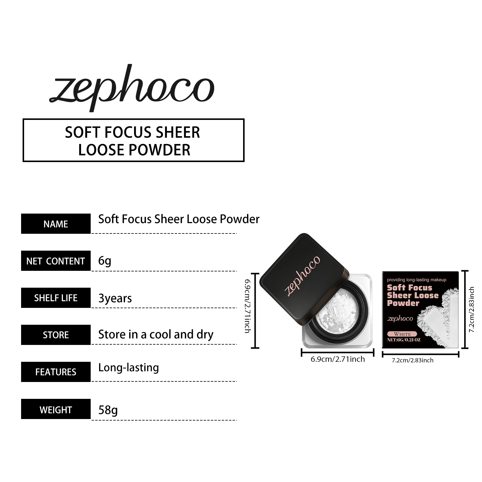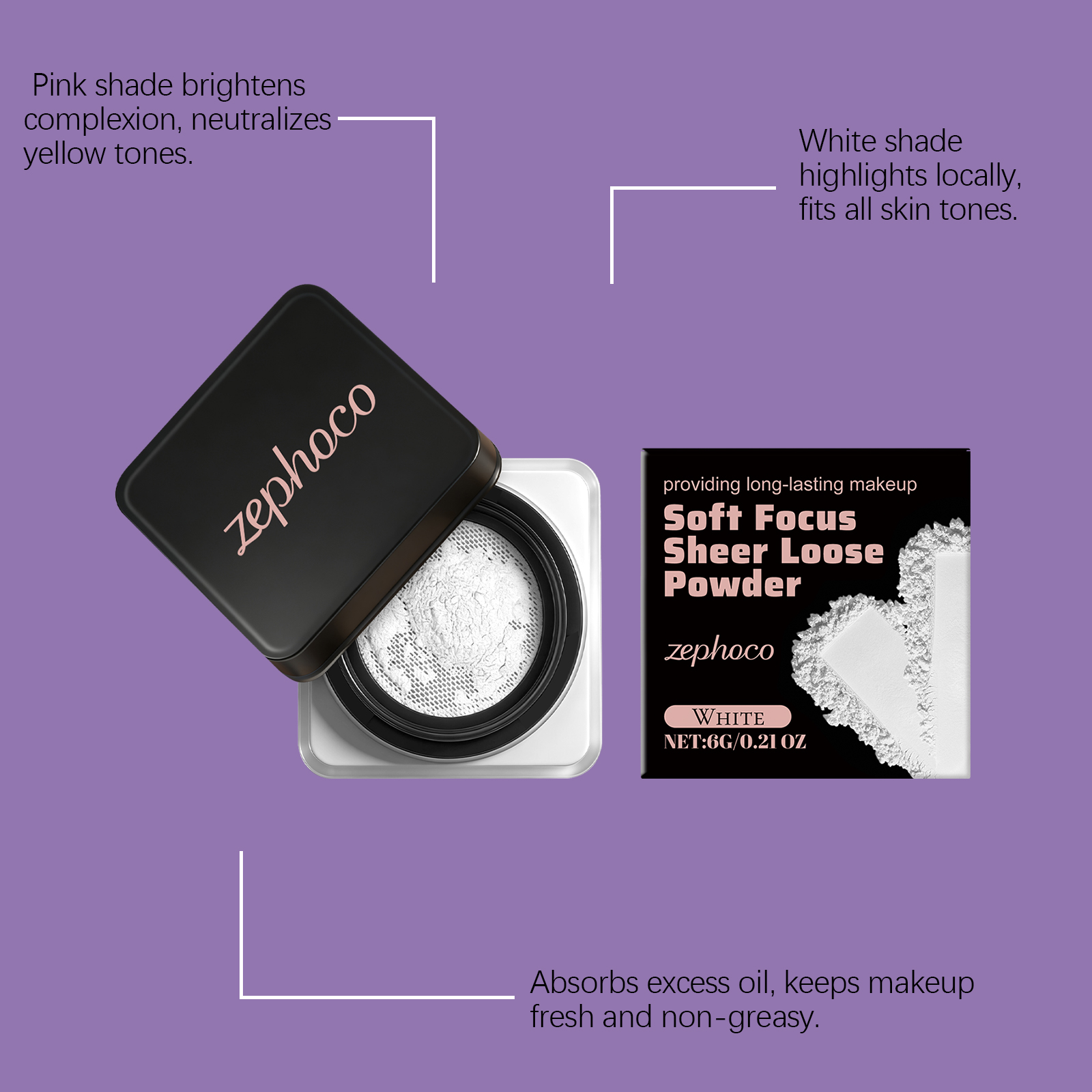 zephoco White Soft, Soft, Clear And Loose Powder Is Naturally Long-Lasting, Light And Adherent, Not Easy To Smudge, And Has A Clear And Transparent Makeup Effect