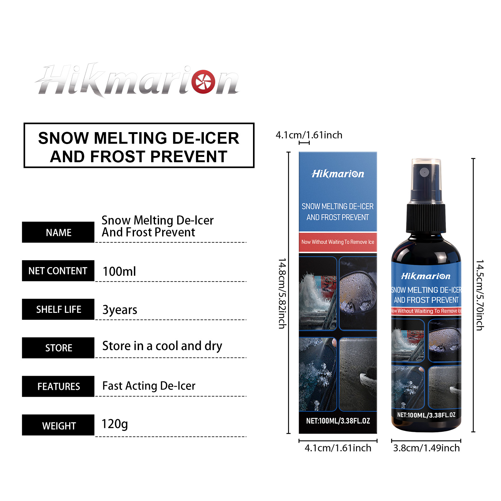 Hikmarion Car Deicing And Snow-Melting Agent, Winter Car Window Snow Removal, Car Anti-Frost And Anti-Freezing Spray