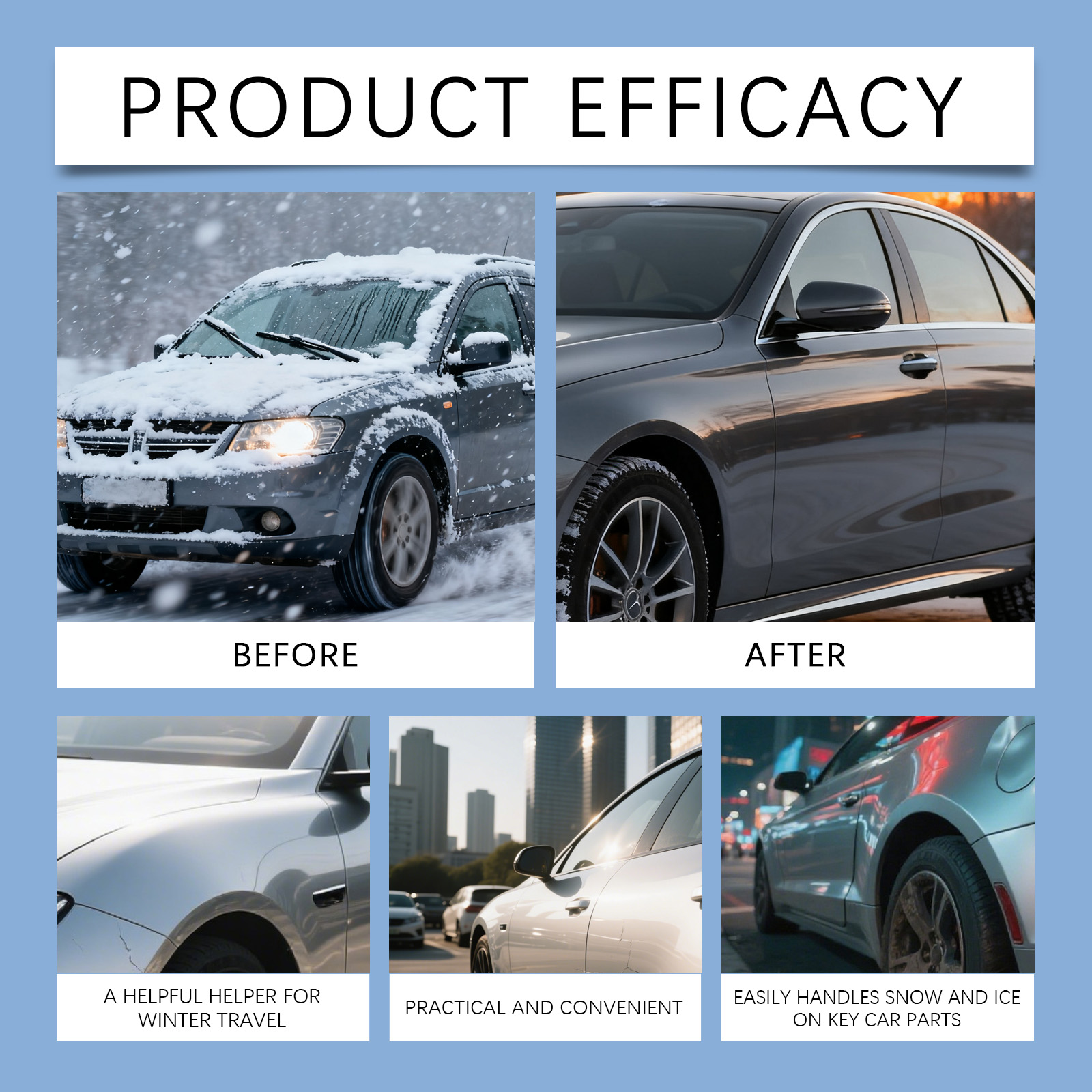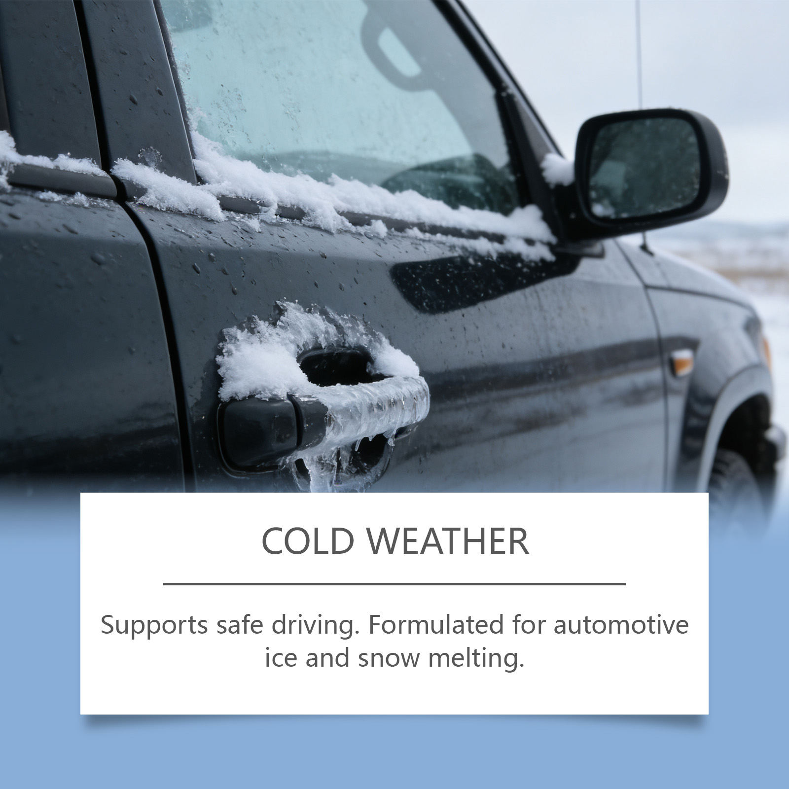 我们的汽车除冰融雪剂,由乙醇、1,2-己二醇精心调配而成。专为快速融化冰块设计。使用方法极为便捷:1.将适量本产品均匀喷洒在车身上。2.用干净的布均匀擦拭,直至冰和雪被清除。并且可以辅助防冻控制。