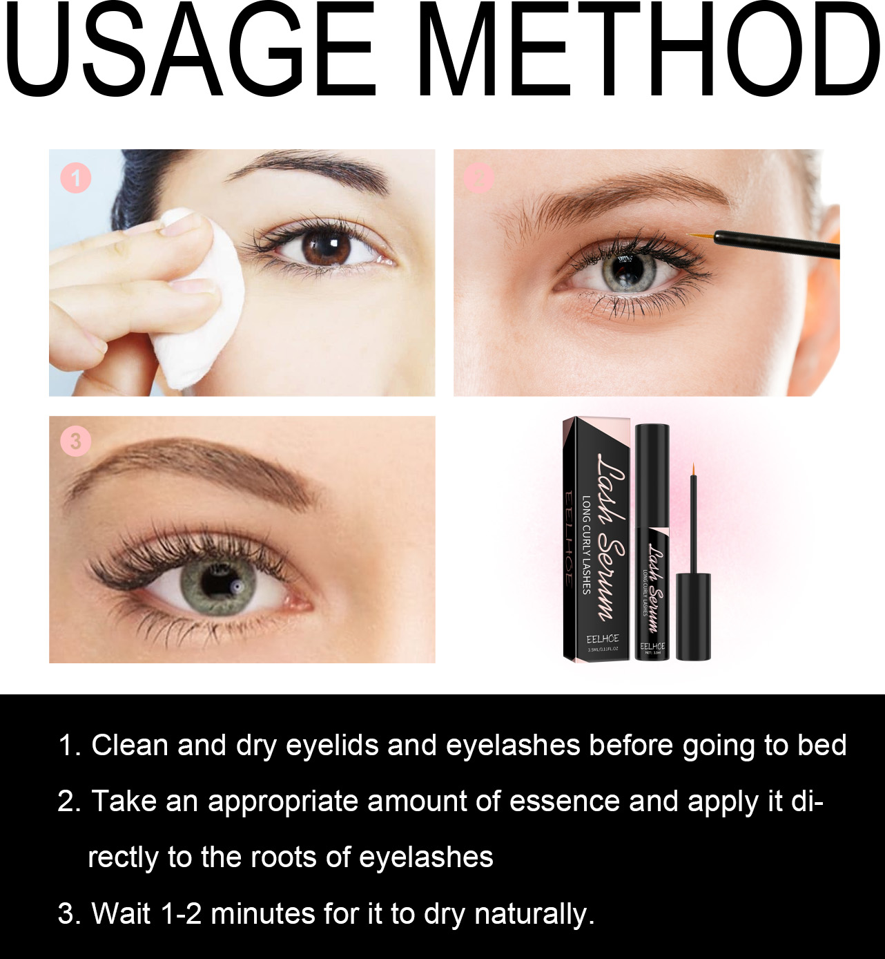 我们的睫毛液含有透明质酸,人参提取物。它可以滋润睫毛根部,使睫毛更黑更亮,增加睫毛的粗细和长度;补充睫毛根部的营养,帮助细、稀、脆弱的睫毛变得更强,减少脱发。它的使用方法很简单: 睡觉前清洁并擦干眼睑和睫毛。取适量精华液直接涂抹于睫毛根部。3.等待1-2分钟,让它自然变干。并且可以减少因干燥引起的睫毛脱落和断裂,保持睫毛浓密。