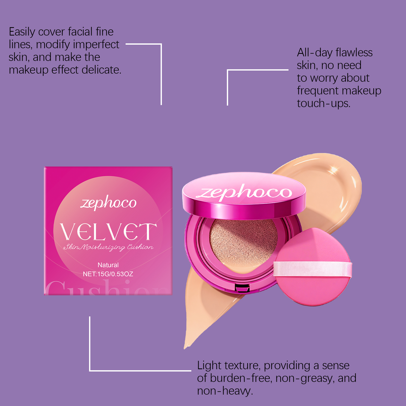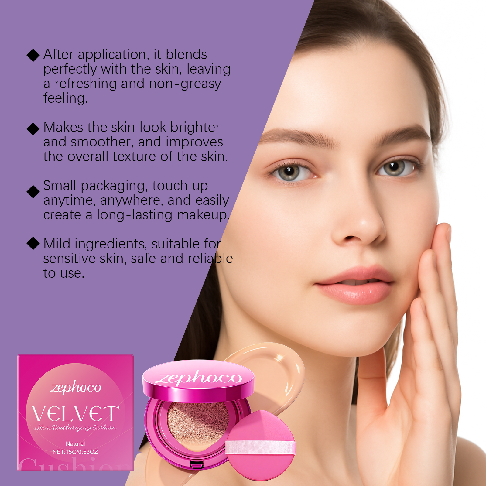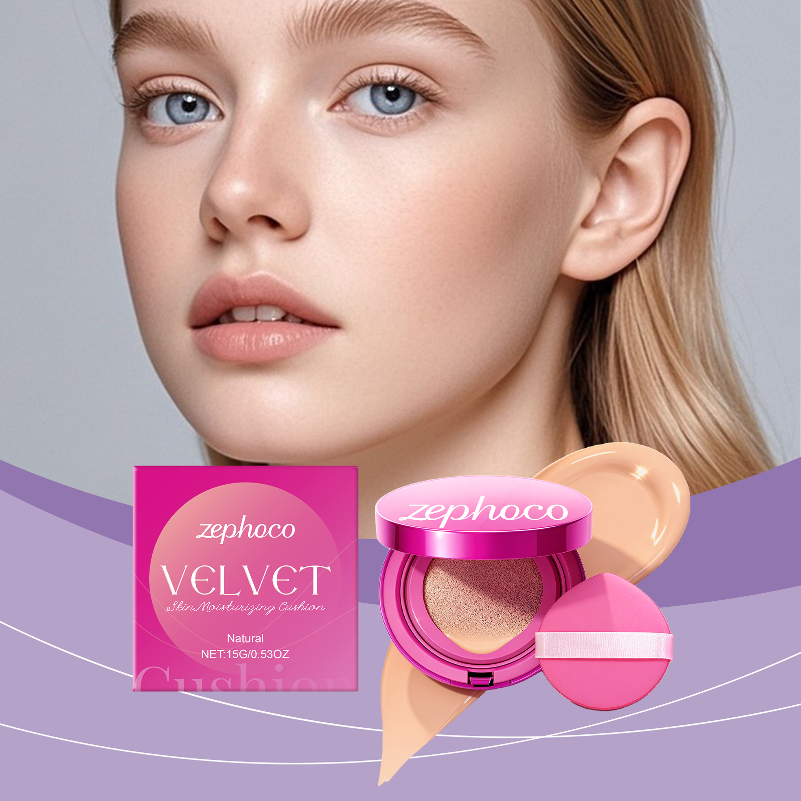 zephoco Natural-Colored Velvet Moisturizing Cushion Is Naturally Light, Thin And Hydrating, Keeping The Skin Hydrated For A Long Time And Providing Light Makeup Coverage