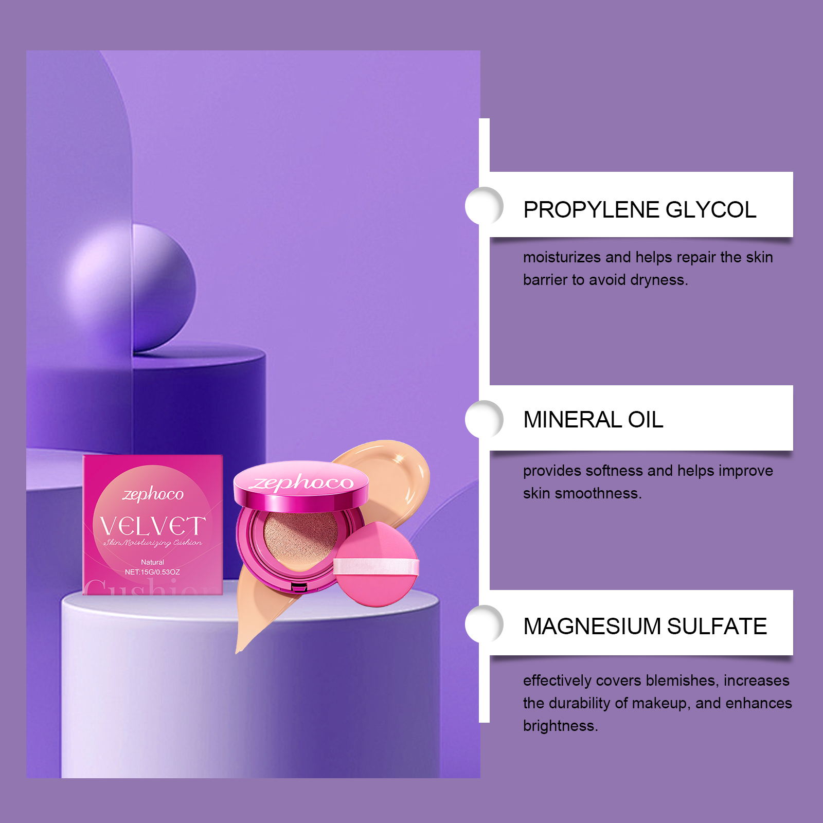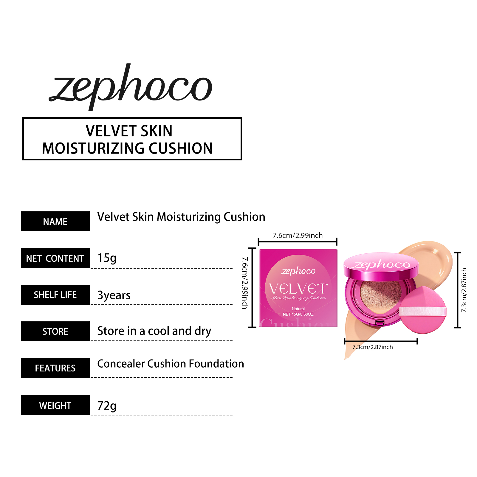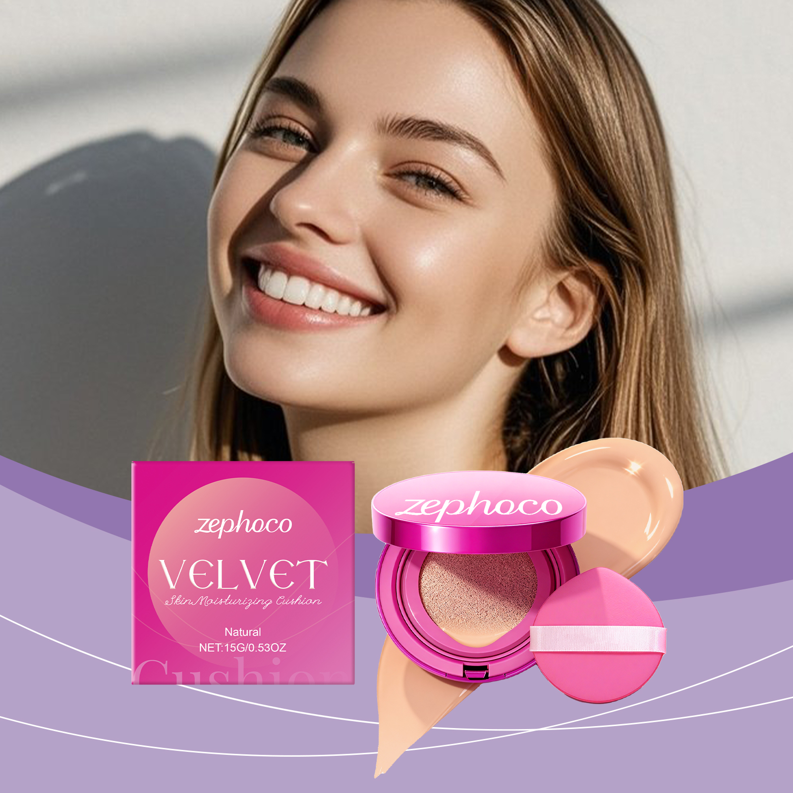 zephoco Natural-Colored Velvet Moisturizing Cushion Is Naturally Light, Thin And Hydrating, Keeping The Skin Hydrated For A Long Time And Providing Light Makeup Coverage