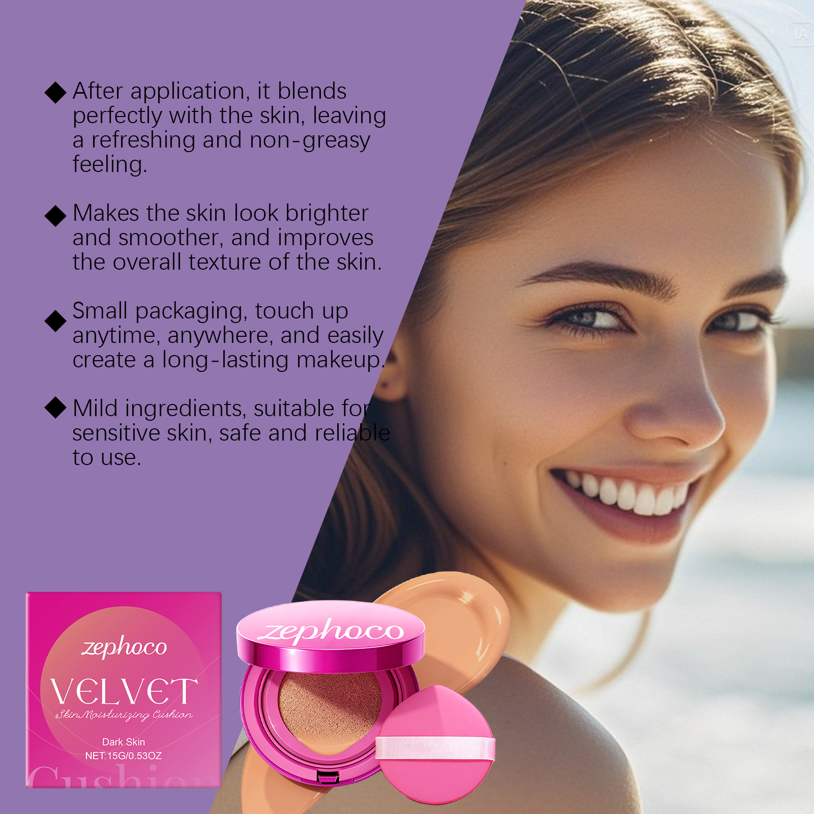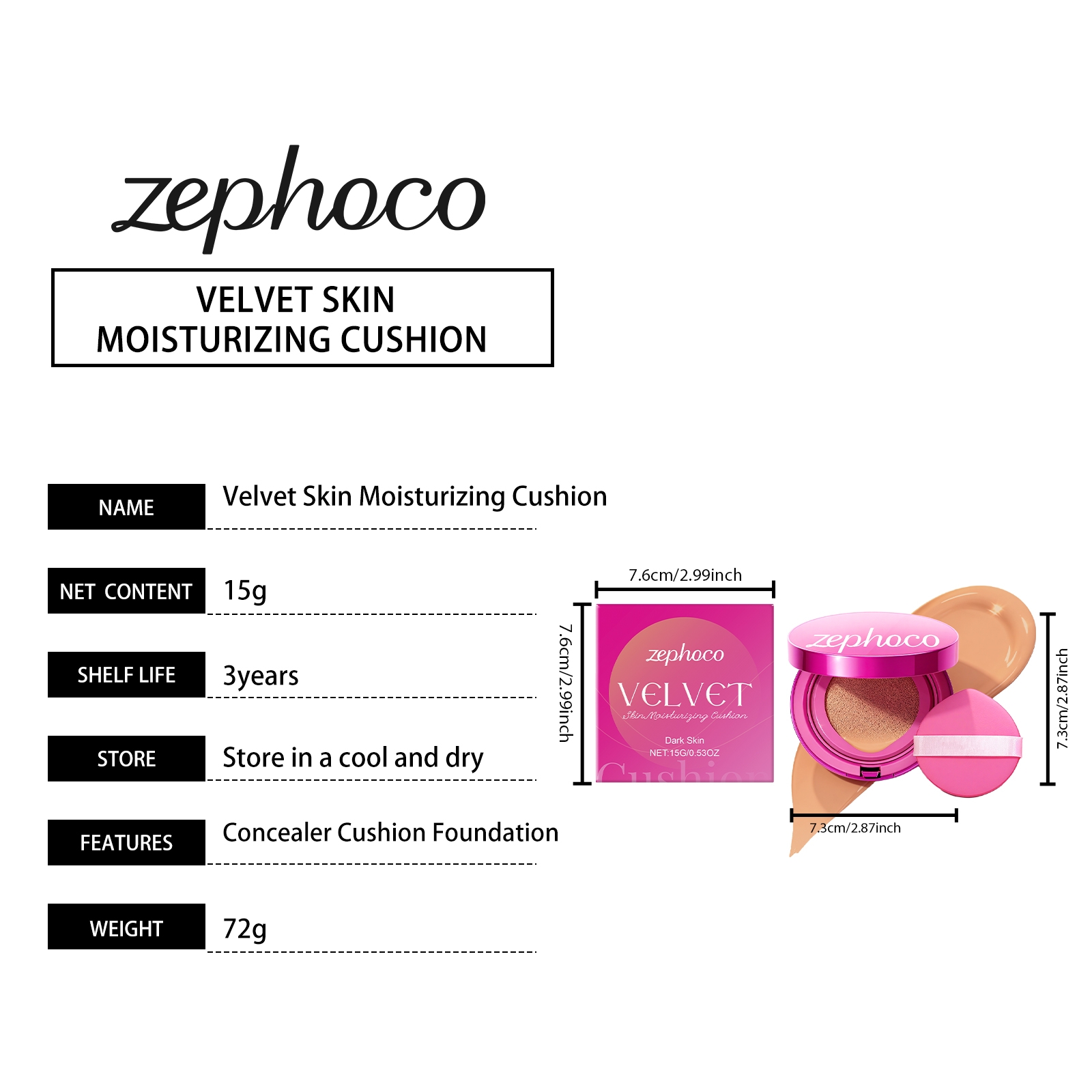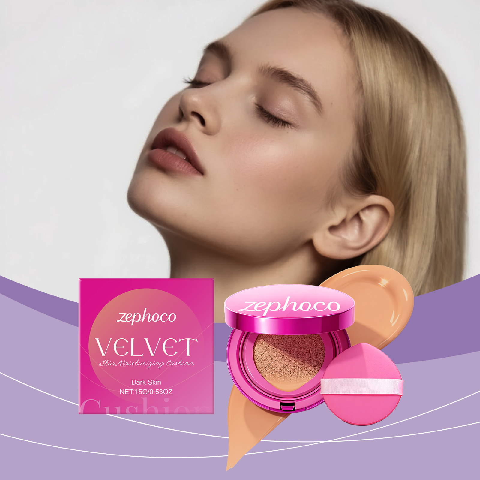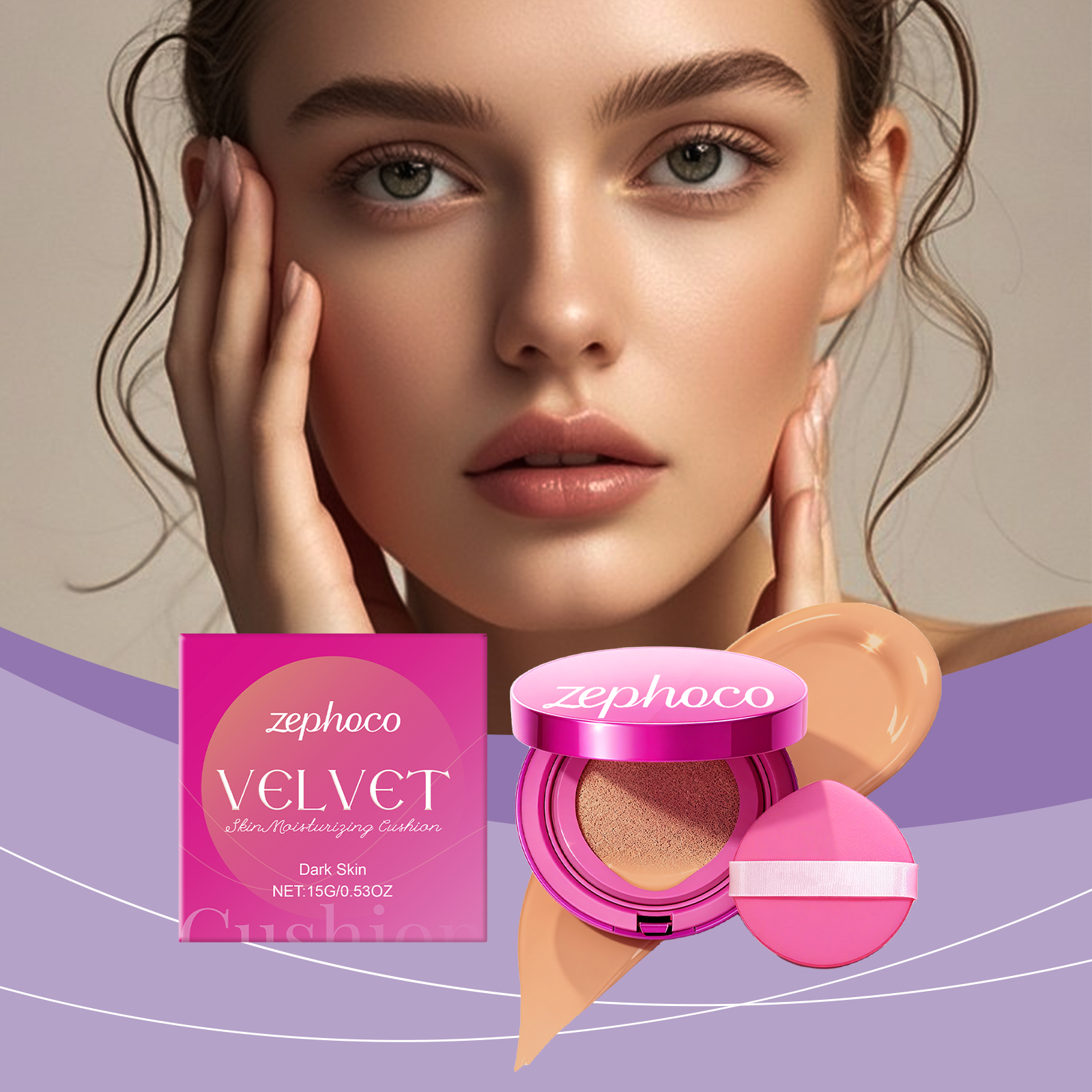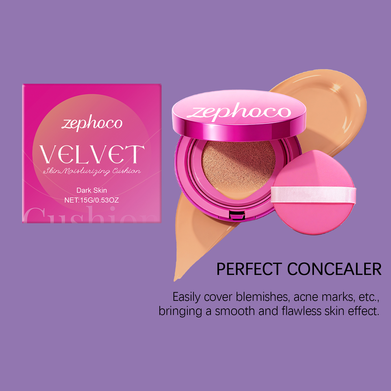 zephoco Dark-Toned Velvet Moisturizing Cushion Naturally Conceals The Makeup, Making It Soft, Lustrous, Clear And Long-Lasting