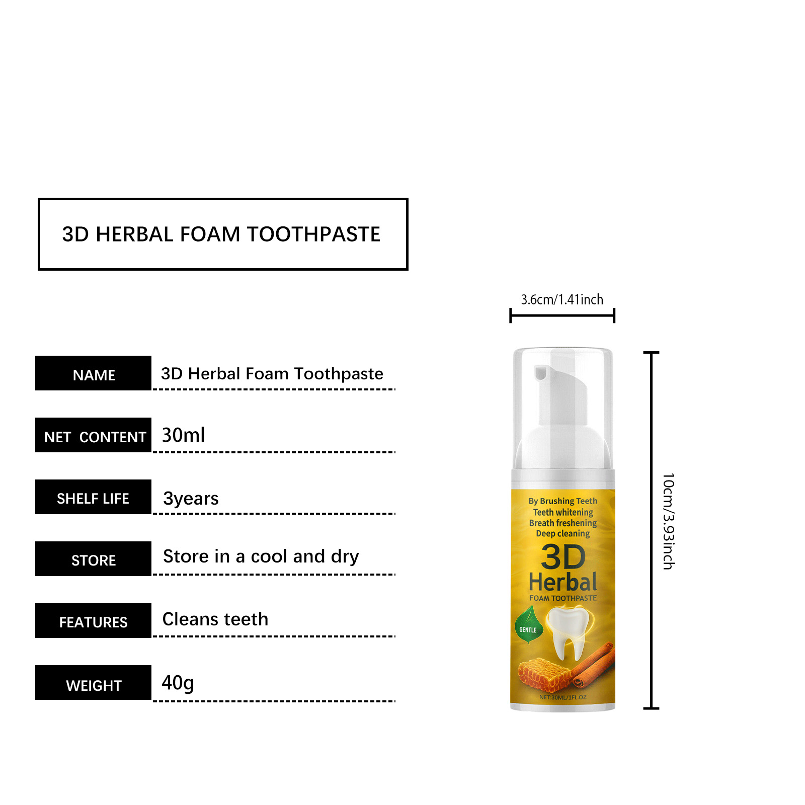 | 产品名称 | 草本泡沫牙膏 |