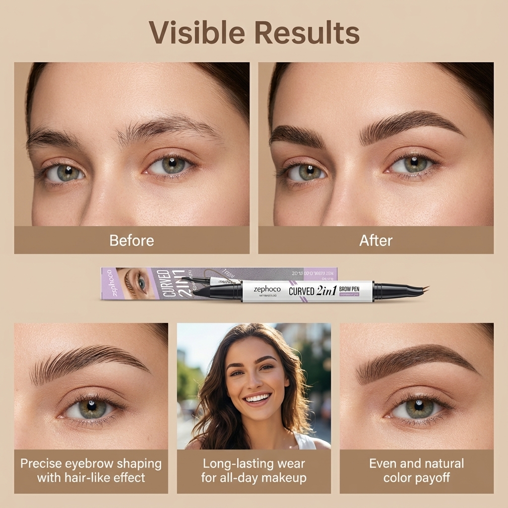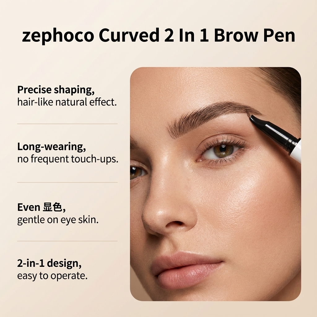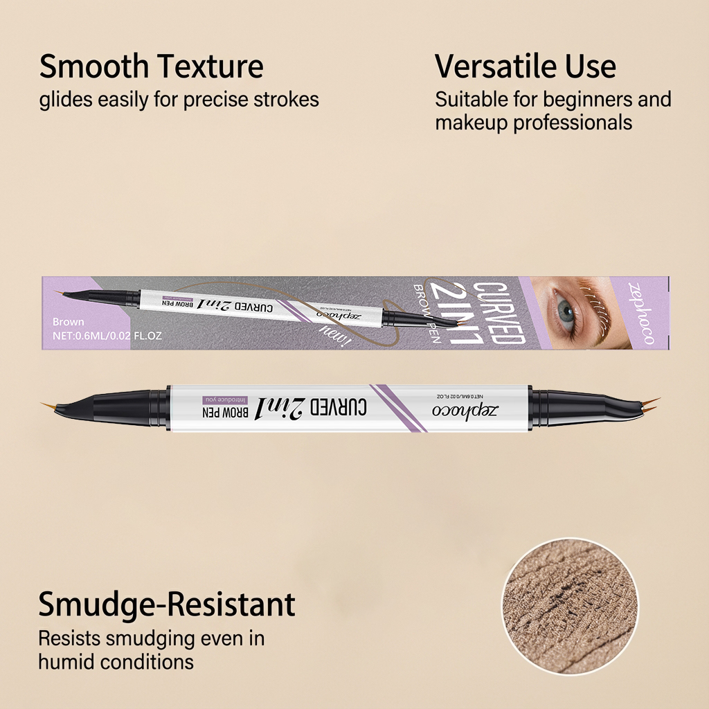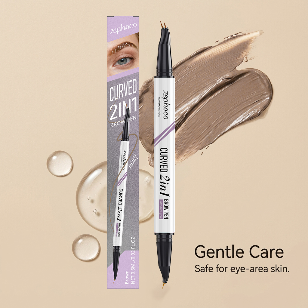 zephoco Brown Double-Headed Eyebrow Pencil With Smooth Coloring Creates A Three-Dimensional Eyebrow Shape. Double-Headed Design Liquid Eyebrow Pencil