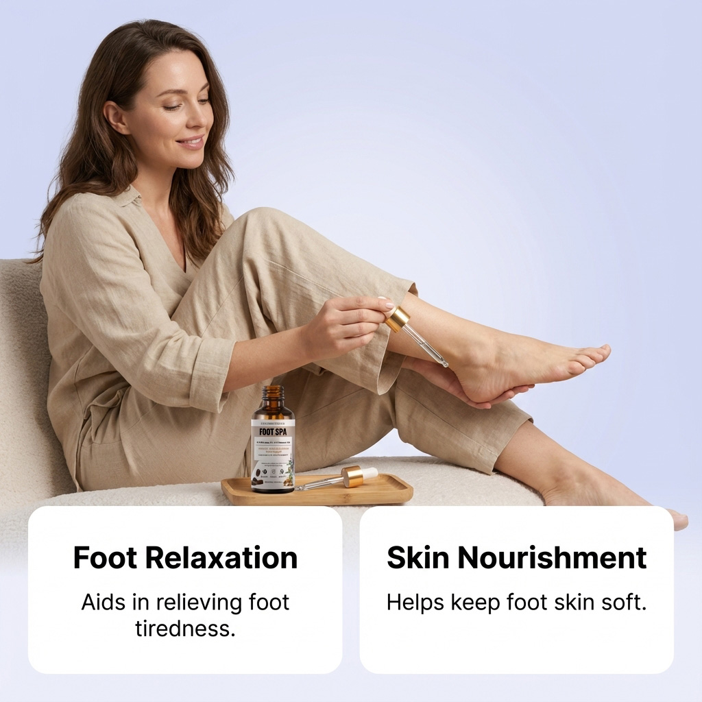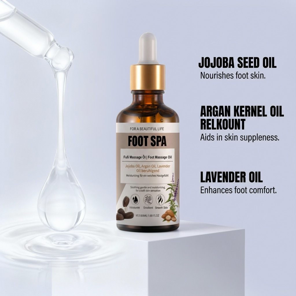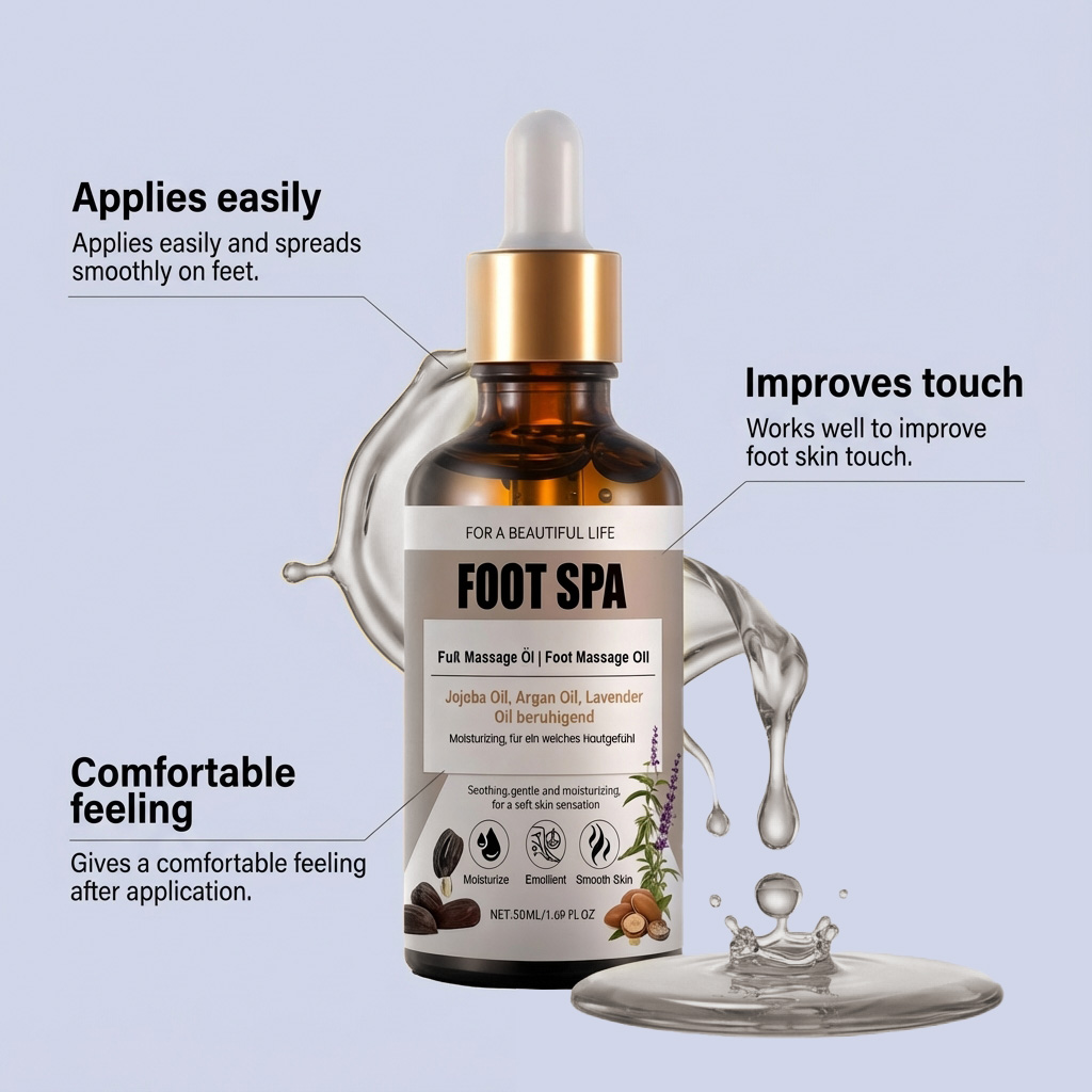 我们的足部按摩精油,由刺阿干树仁油、薰衣草油精心调配而成。专为缓解足部疲劳设计。使用方法极为便捷:清洁并擦干双脚,去除死皮细胞,在掌心取适量精油,双手搓揉10-15秒,然后均匀涂抹于脚部。并且有助于保持足部皮肤柔软。