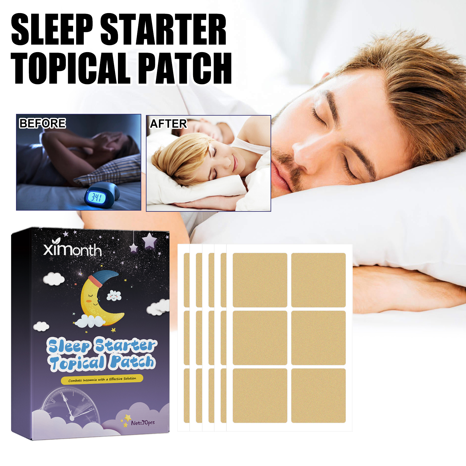 Ximonth Sleeping Patch, Sleep Aid Patch Lavender Essence Relieves Fatigue And Relaxes Sleep Care Patch
