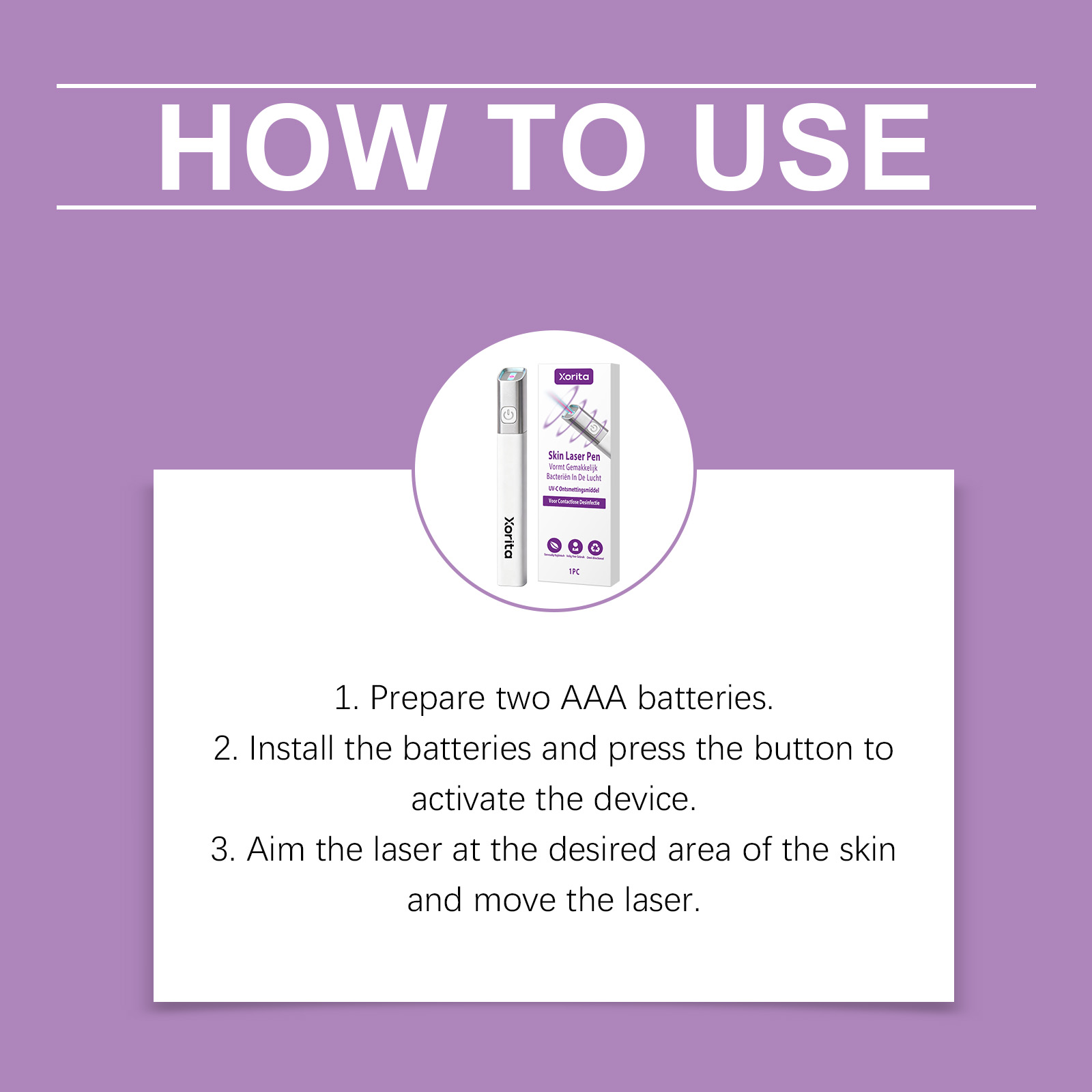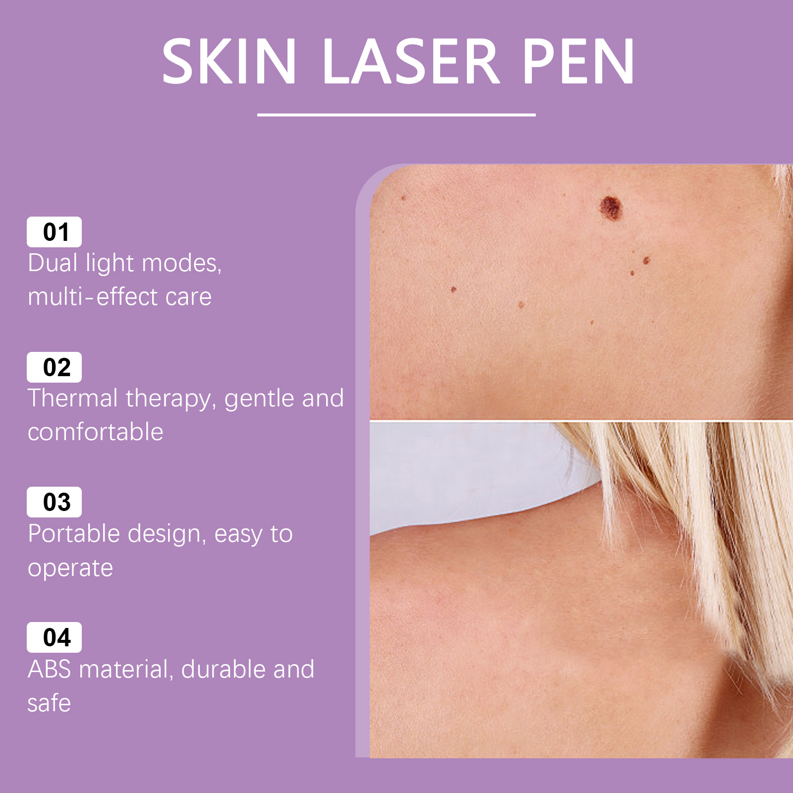 我们的皮肤护理笔,由ABS精心制作而成。专为温和的皮肤支持,辅助皮肤更新过程设计。使用方法极为便捷:1.准备两节AAA电池。2.安装电池并按下按钮以激活设备。3.将激光对准皮肤的指定区域并移动激光。并且它可以具有抗菌功效,适用于家庭和个人使用。