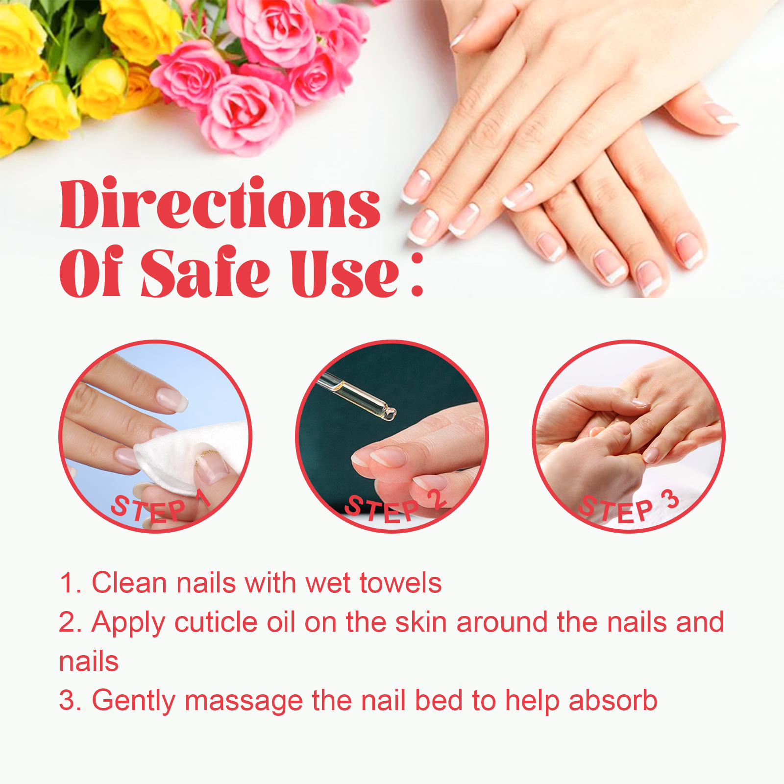 我们的草莓味指甲护理油含有草莓果提取物、霍霍巴籽油、茶籽油。它可以滋润干燥的指甲和手保持指甲健康,滋养脆弱的指甲和干燥的角质层,还能提升指甲的美观度,让指甲更漂亮、更有光泽。它的使用方法很简单:用湿毛巾清洁指甲,在指甲和指甲周围的皮肤上涂抹本品,轻轻按摩甲床,帮助吸收。可以深层滋润指甲及周围肌肤,缓解干燥问题。
