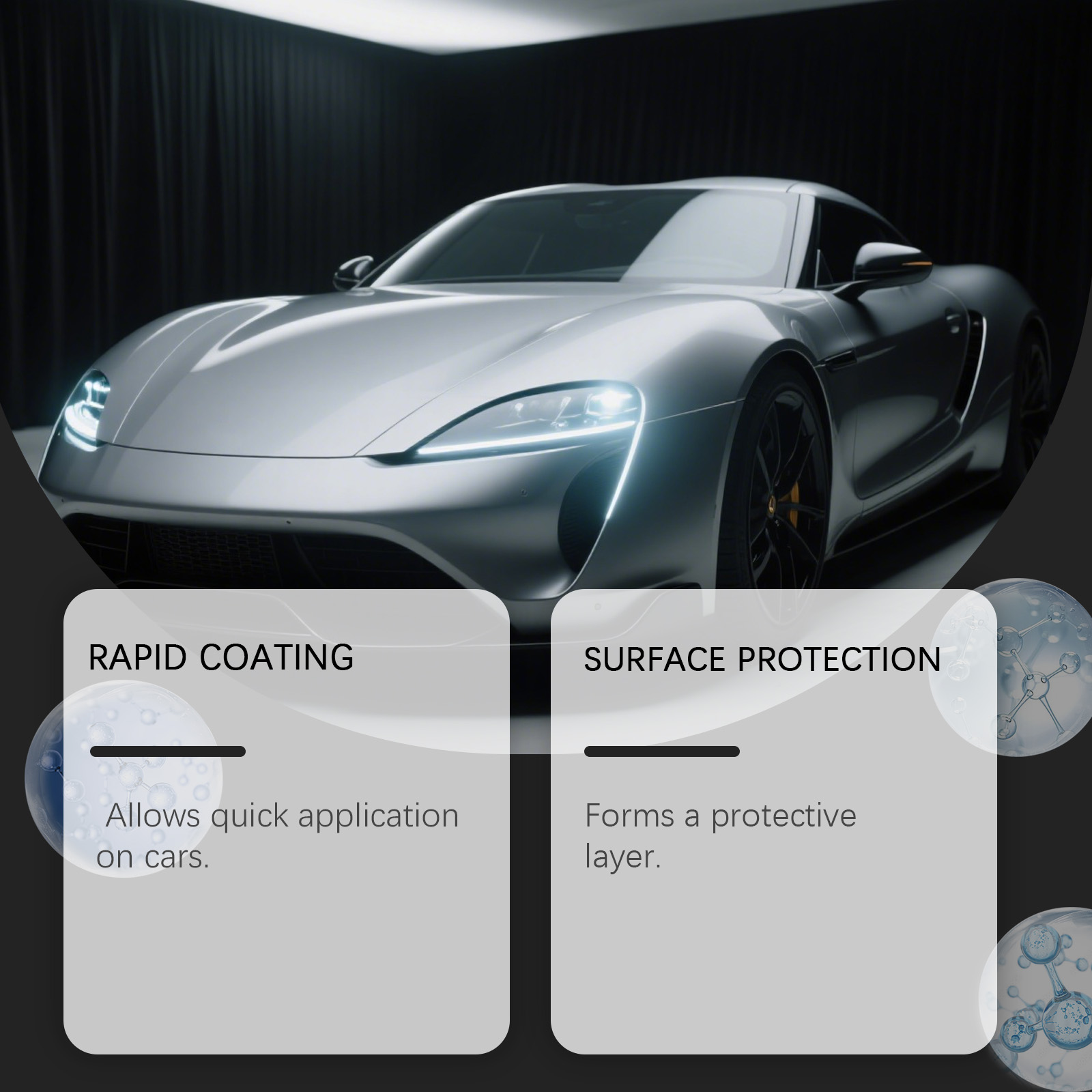我们的汽车涂层喷剂,由乙烯共聚物 、1,2-己二醇精心调配而成。专为让您的汽车保持清洁、光亮,并延长其原有的光泽设计。使用方法极为便捷:清洁汽车表面,以去除灰尘和杂质,并将其擦干。将瓶子充分摇匀,然后从距离表面约 20 厘米的位置均匀喷洒。用海绵擦拭直至表面光亮。并且可以允许在汽车上快速应用。