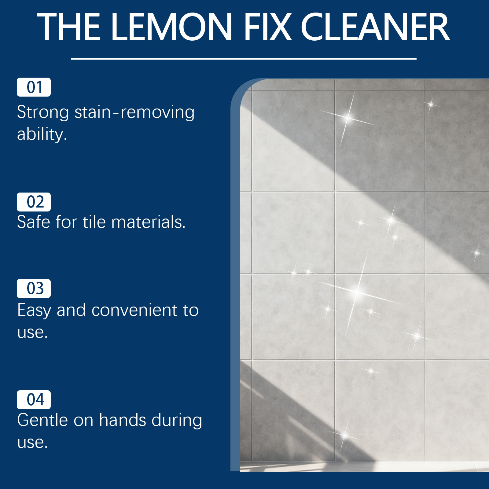 我们的柠檬焕亮清洁剂,由癸基葡糖苷, 1,2-己二醇精心调配而成。专为高效清除瓷砖污渍设计。使用方法极为便捷:首先,擦去表面灰尘,然后均匀喷洒柠檬清洁剂。静置几分钟后,再用干净布轻轻擦拭。如有必要,用水冲洗后让表面自然风干。并且它简单步骤,可以实现快速清洁。