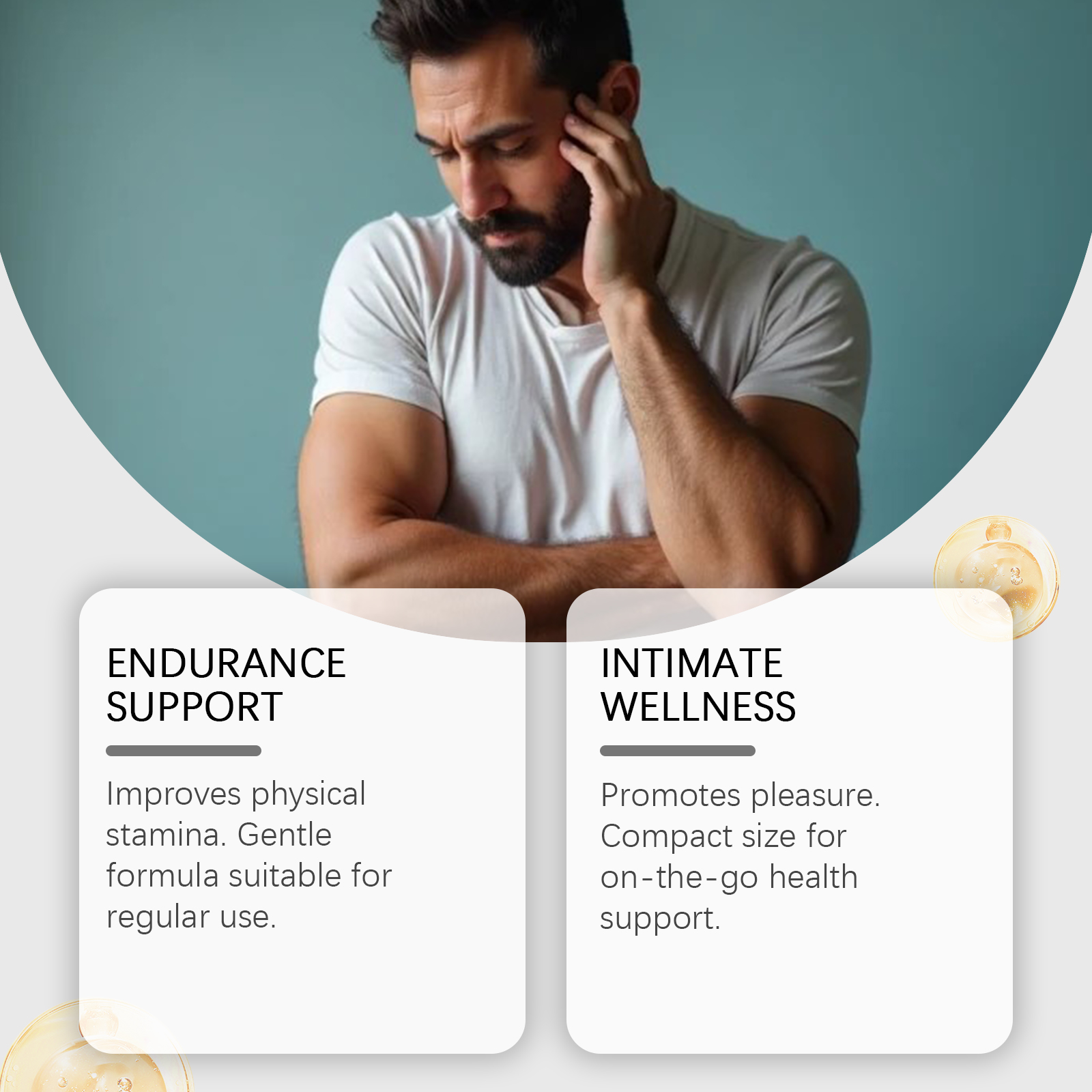 我们的男性护理贴,由巴西香可可果提取物、银杏叶提取物精心调配而成。专为提升体力耐力设计。使用方法极为便捷:1. 清洁受影响区域,将贴片从包装中取出,然后将两侧的隔离纸揭掉。2. 直接涂抹于患处,每 24 小时更换一次。并且可以促进愉悦感。小巧尺寸,便于随身携带的健康支持。