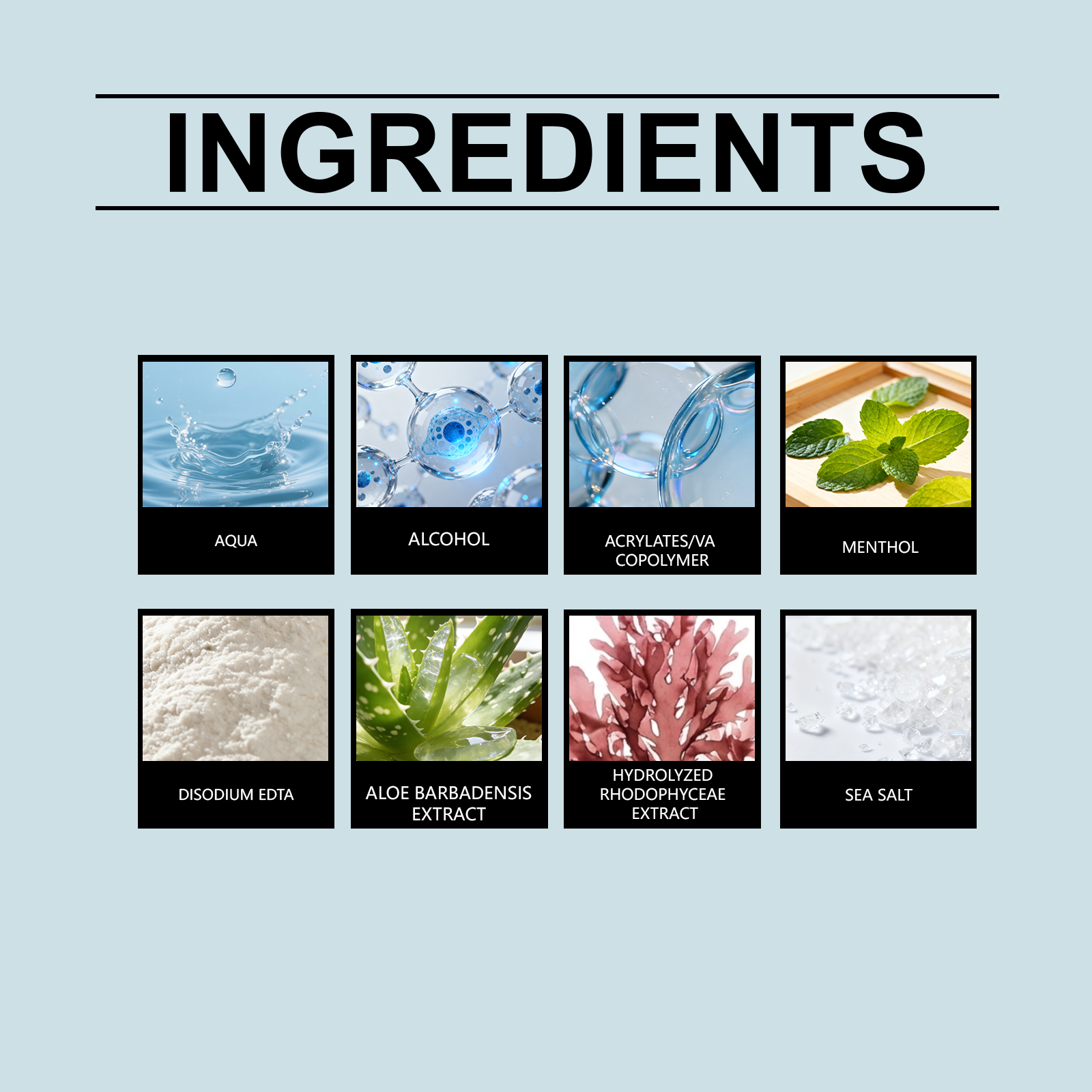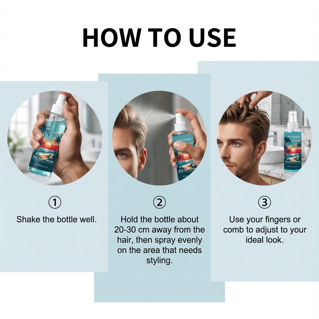 我们的男士海盐定型喷雾,由水解红藻提取物、库拉索芦荟提取物精心调配而成。专为增强头发的质感和定型效果设计。使用方法极为便捷:充分摇匀瓶子。将瓶子距离头发约20-30厘米,然后均匀喷洒在需要造型的区域。用手指或梳子调整至理想造型。并且可以舒缓并滋养头发。