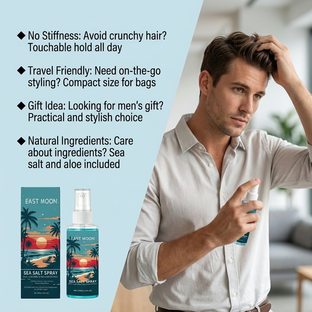 East Moon Men's Sea Salt Styling Spray Men's Hairstyle Texture Styling Fluffy And Refreshing Styling Spray