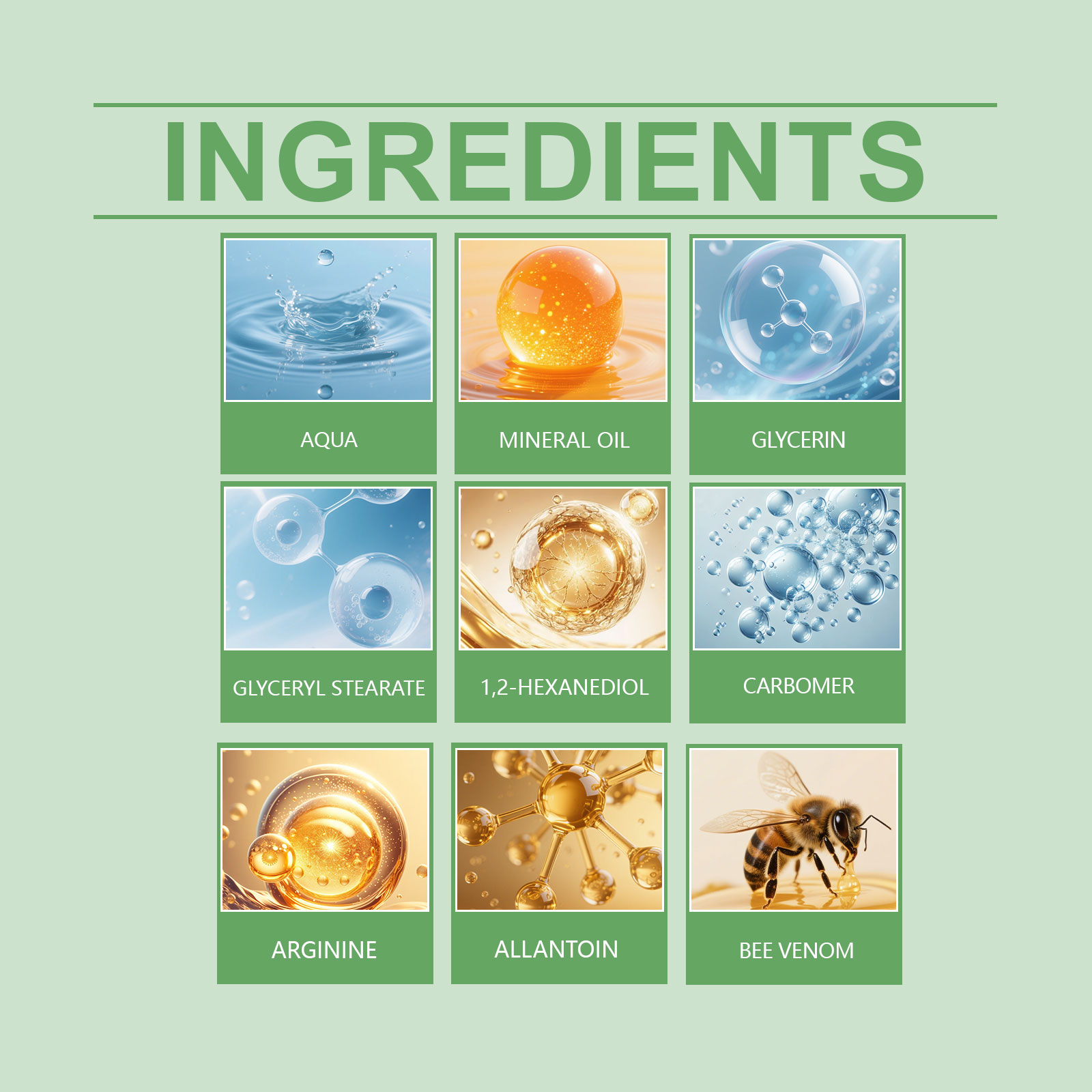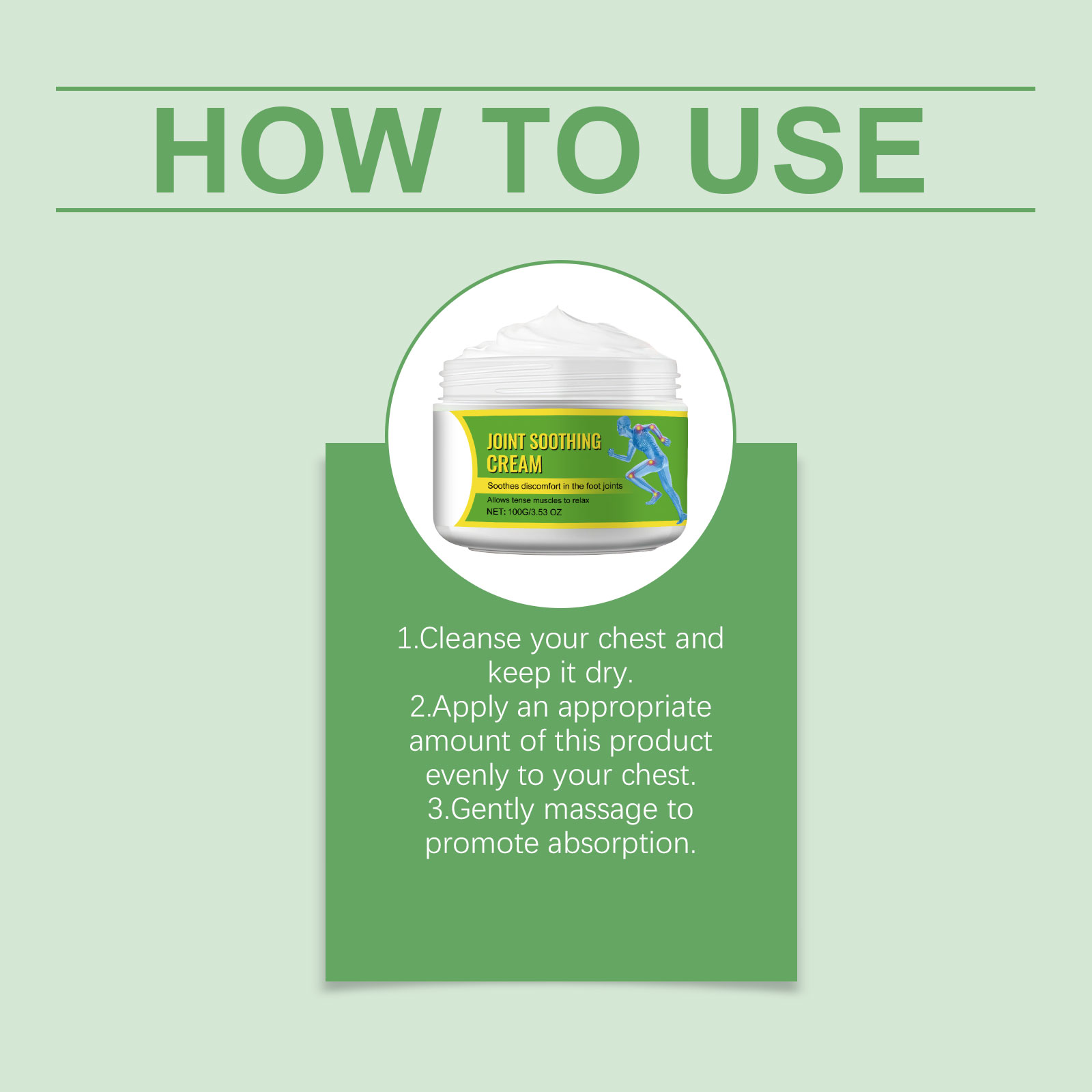 我们的关节护理霜,由尿囊素、蜂毒精心调配而成。专为缓解皮肤不适设计。使用方法极为便捷:1.清洁胸部并保持干燥。2.将适量本产品均匀涂抹于胸部。3.轻柔按摩,以促进吸收。并且它没有沉重或粘腻的感觉。
