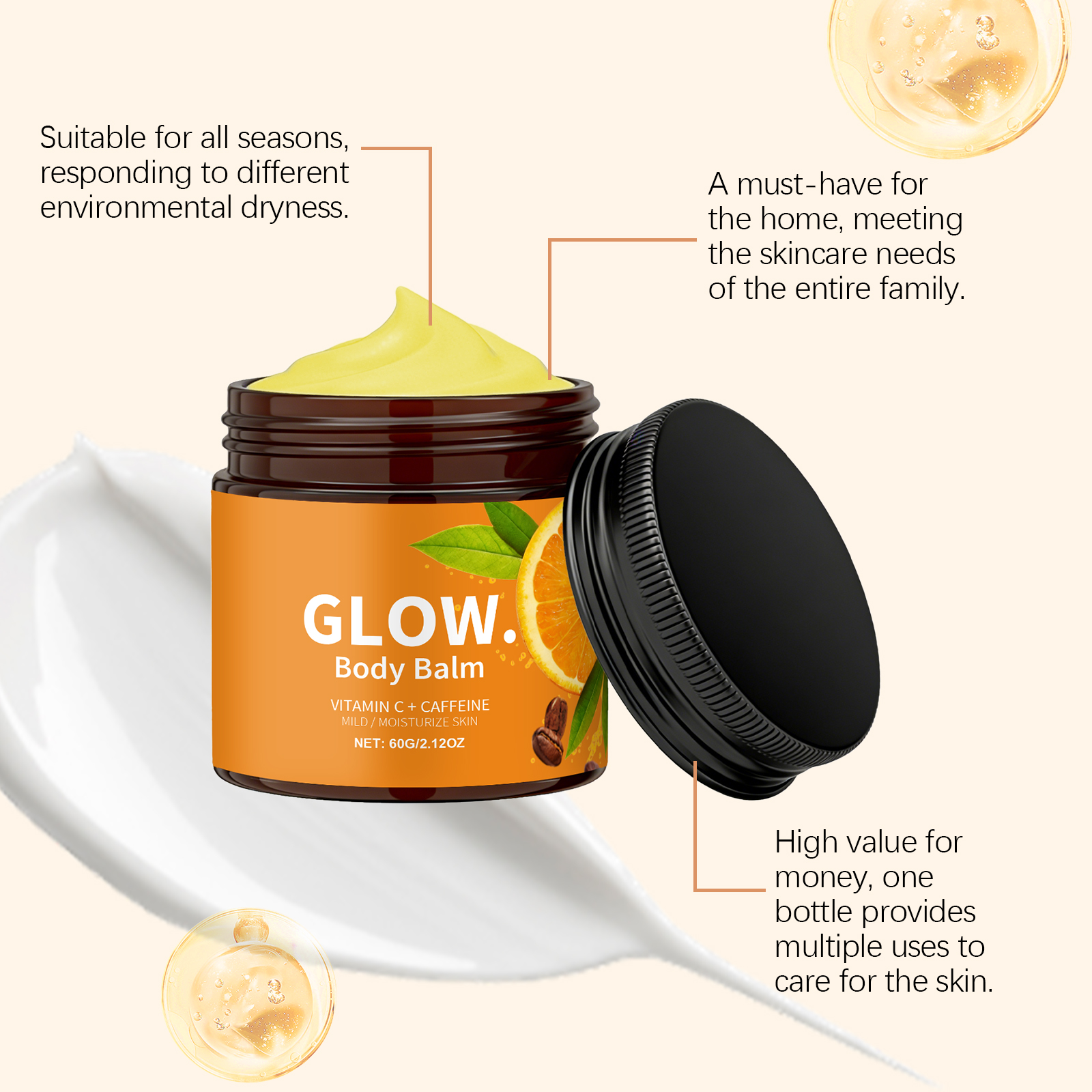 我们的保湿润肤霜,由咖啡因、牛油果树果脂精心调配而成。专为滋润干燥肌肤,缓解紧绷感,并使皮肤保持水润饱满设计。使用方法极为便捷:1.清洁并擦干皮肤。2.将适量本产品均匀涂抹于皮肤上。3.轻柔按摩,以促进吸收。并且可以改善暗沉,增强透明感,有助于维持皮肤弹性和活力。