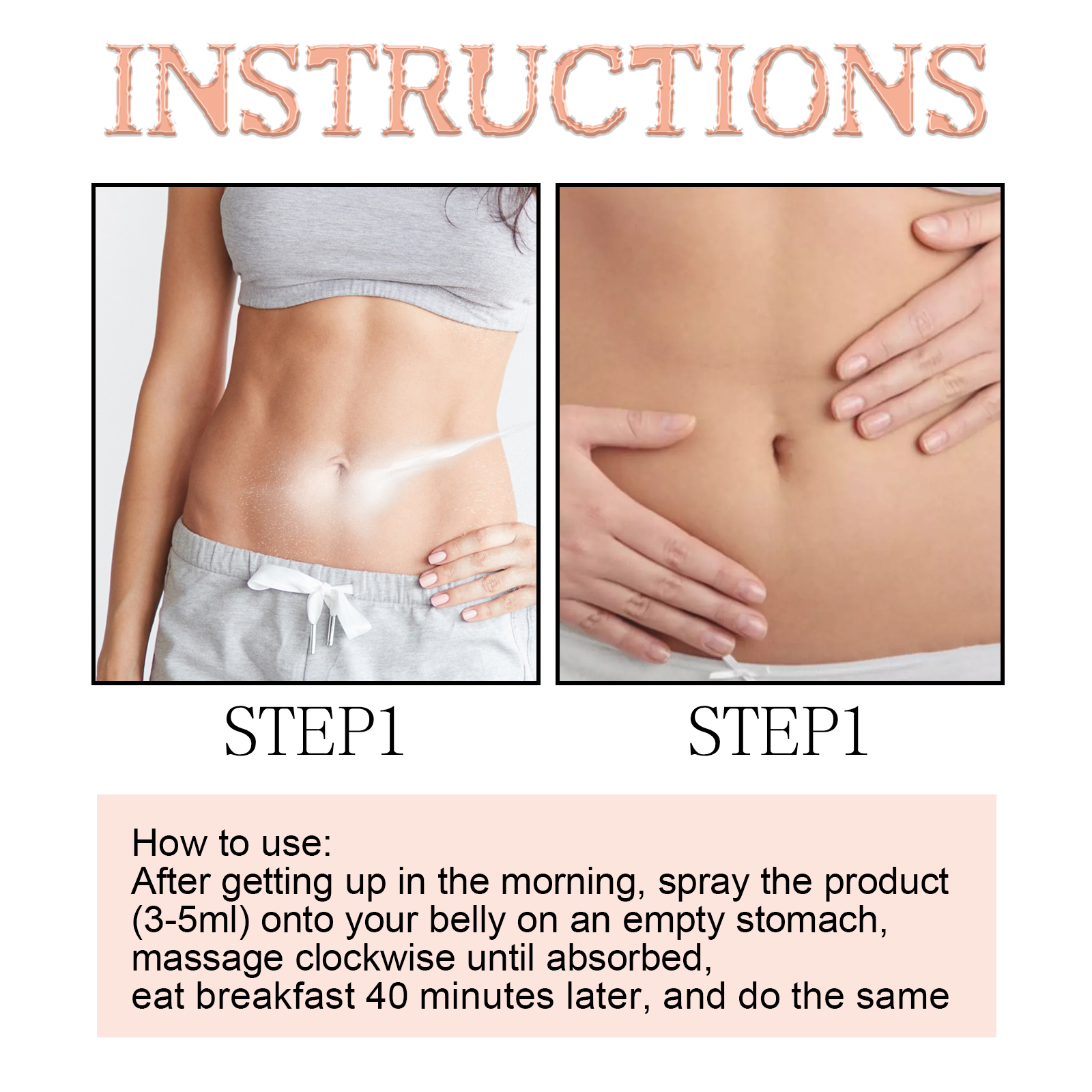 我们的大蒜塑身喷雾含有大蒜、山楂、野菊花。它可以消耗脂肪紧致塑身,让活性成分迅速渗透脂肪,加速燃烧,排出废物,塑造身体,卸下“肚子”的包袱,无负担多吃还能轻松减脂。它的使用方法很简单:早晨起床后,空腹将本品(3-5英里)喷于腹部,顺时针按摩至吸收;晚40分钟吃早餐,同样如此。减去身体多余脂肪,快速燃烧,塑造美好身材。