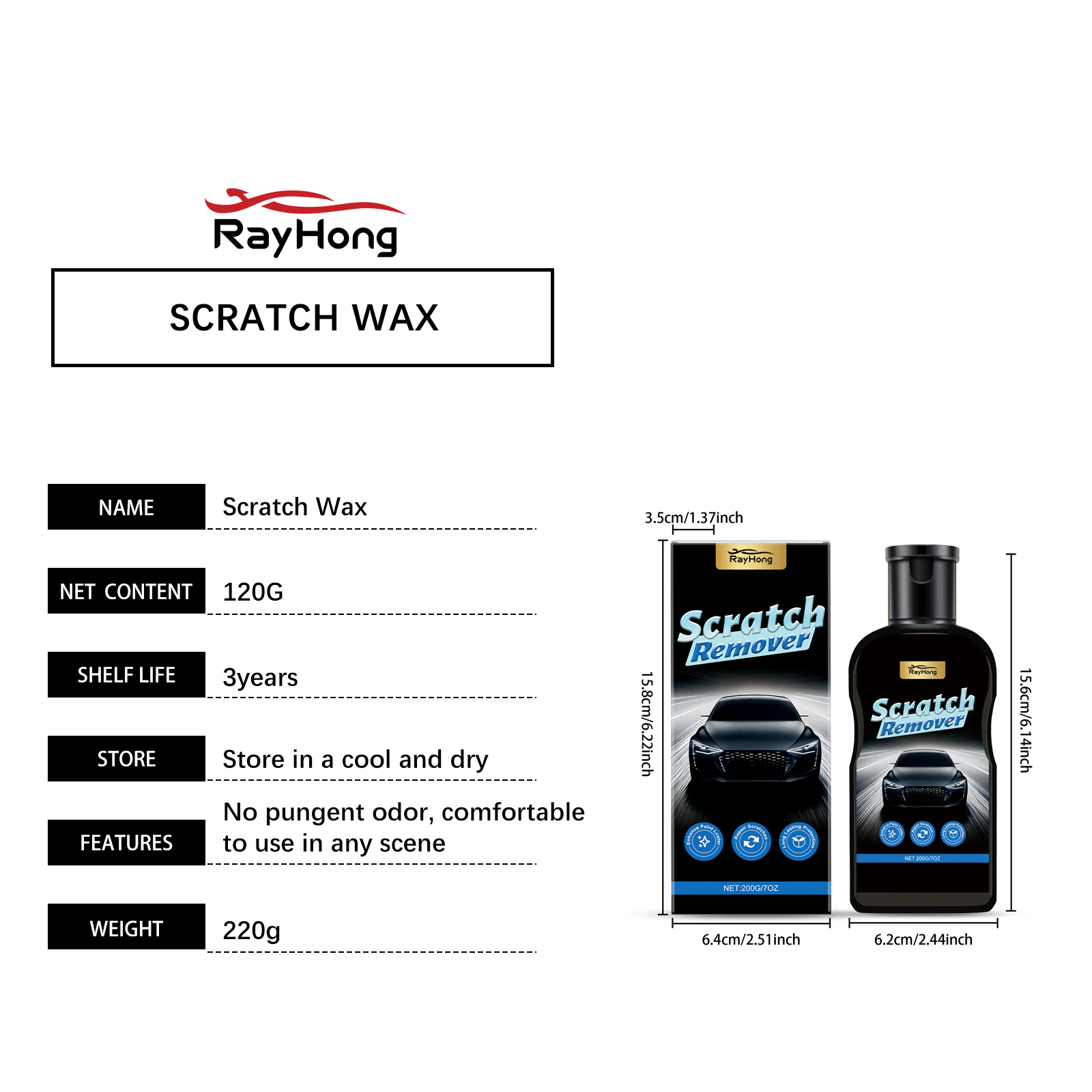 Rayhong Scratch Repair Cream Is A Daily Maintenance Cream For Refurbishing, Polishing And Repairing Scratches On Car Bodies