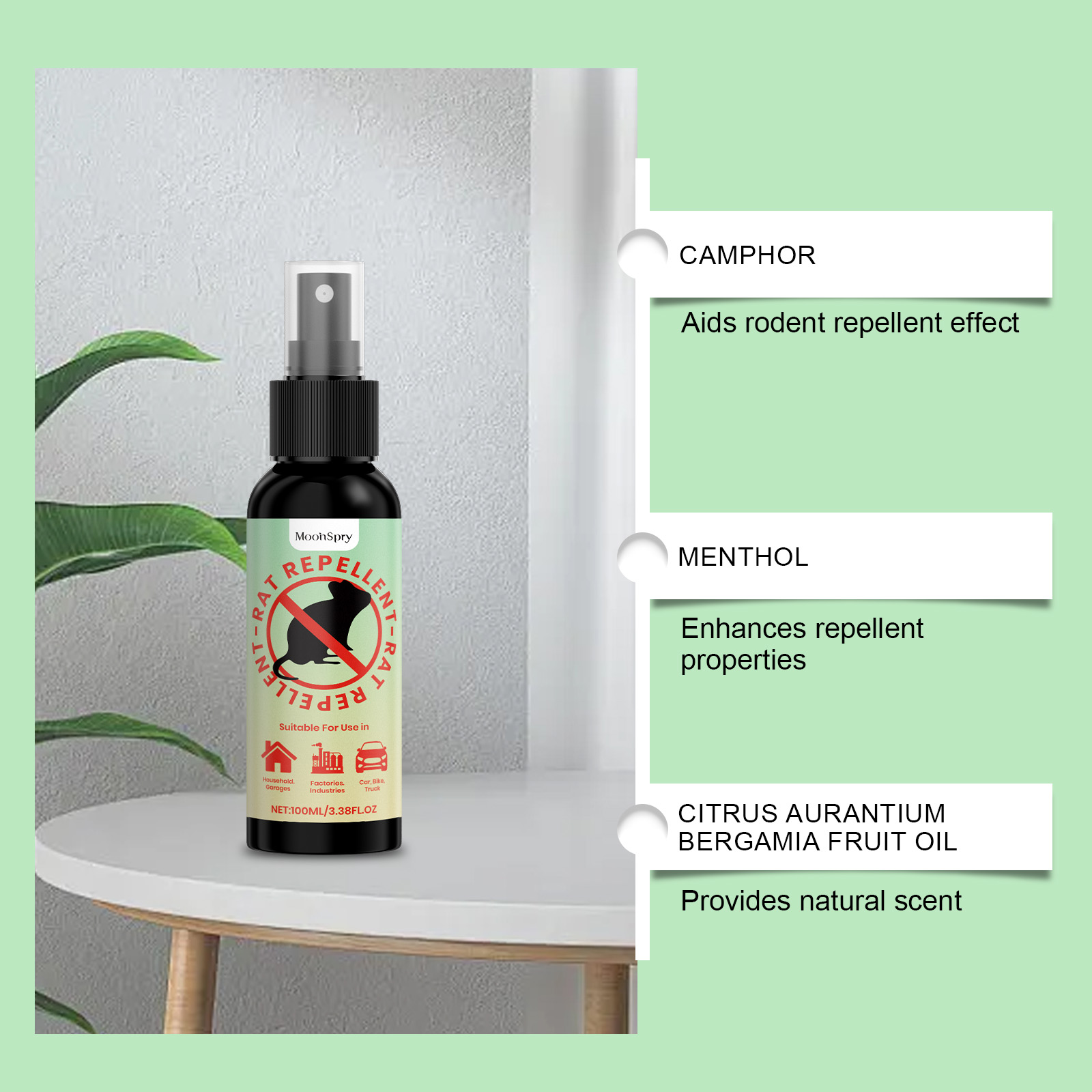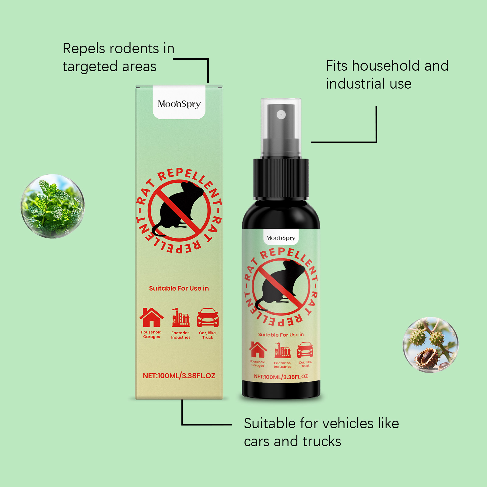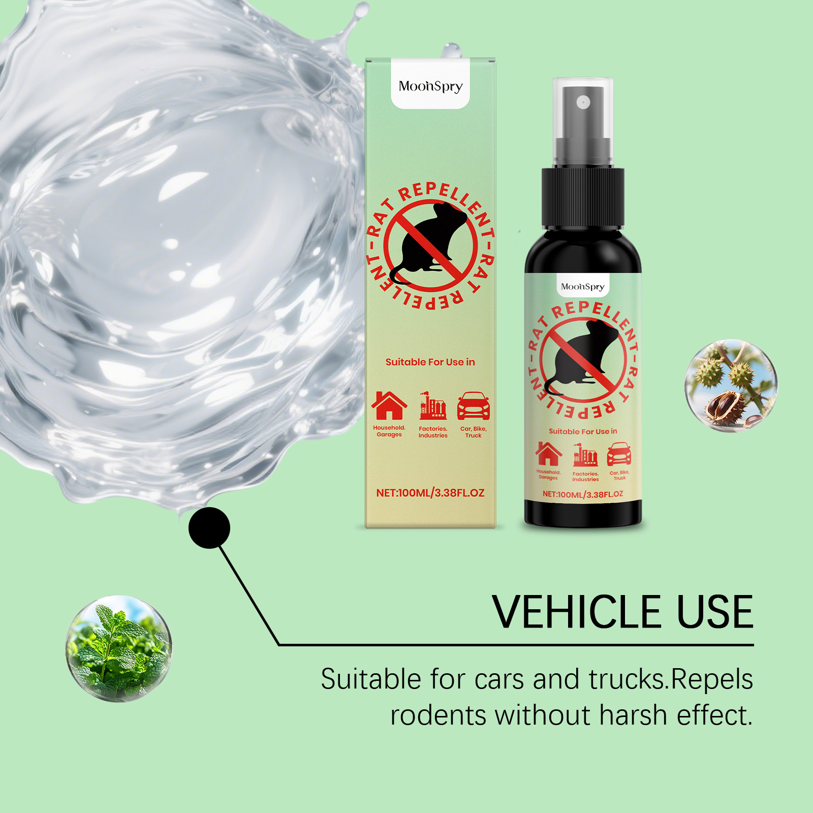 MoonSpry Rat repellent spray for home and car rat repellent, avoiding rats and preventing gnawing. Safe, convenient and suitable for multiple scenarios
