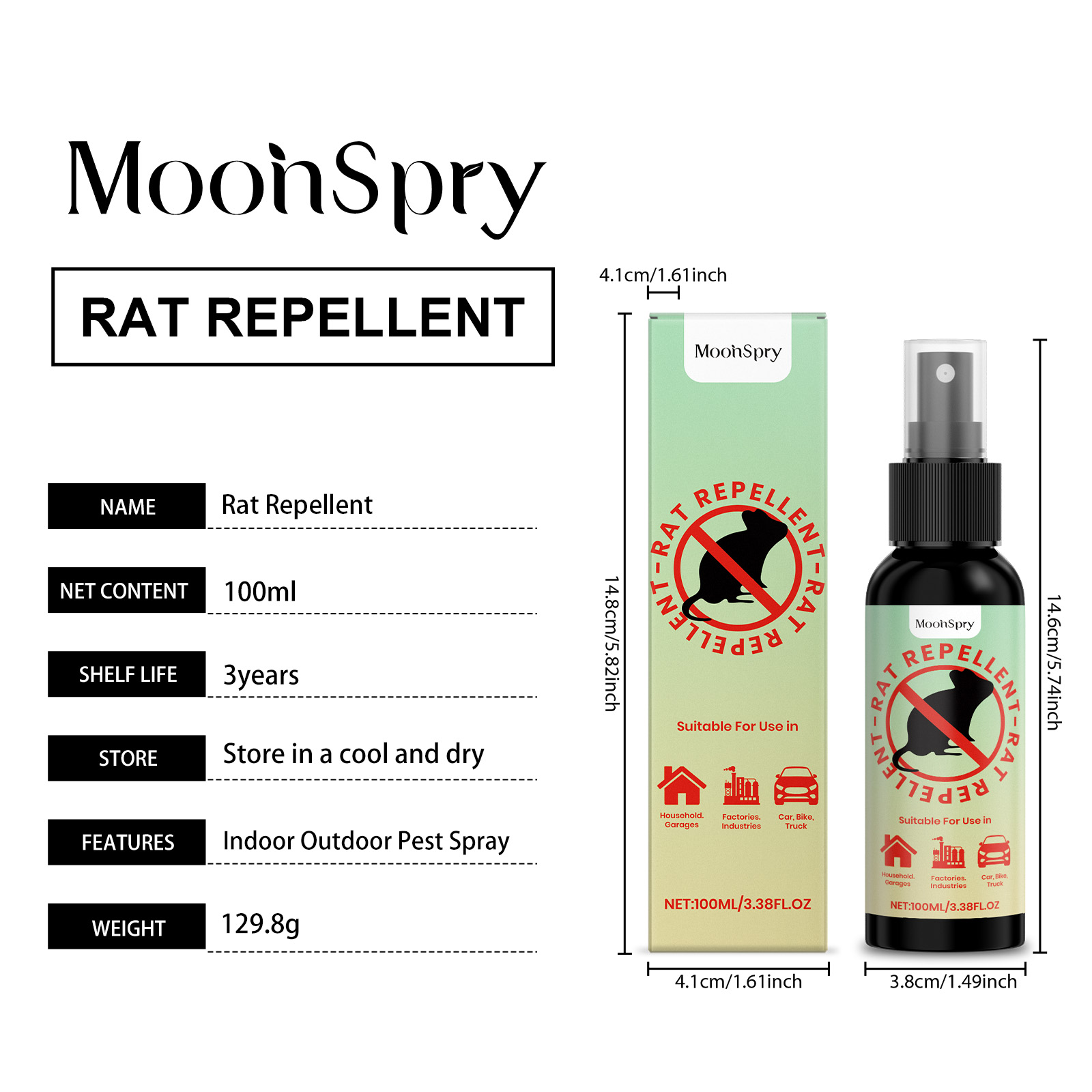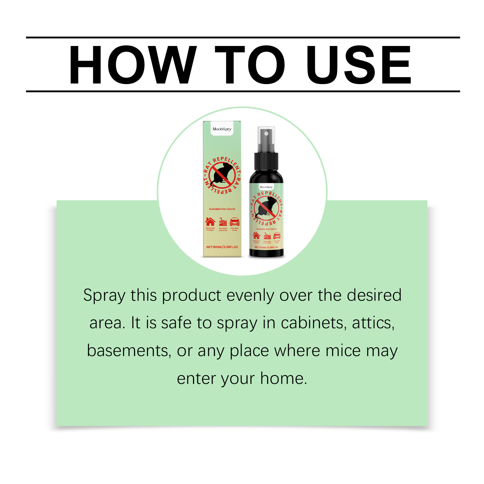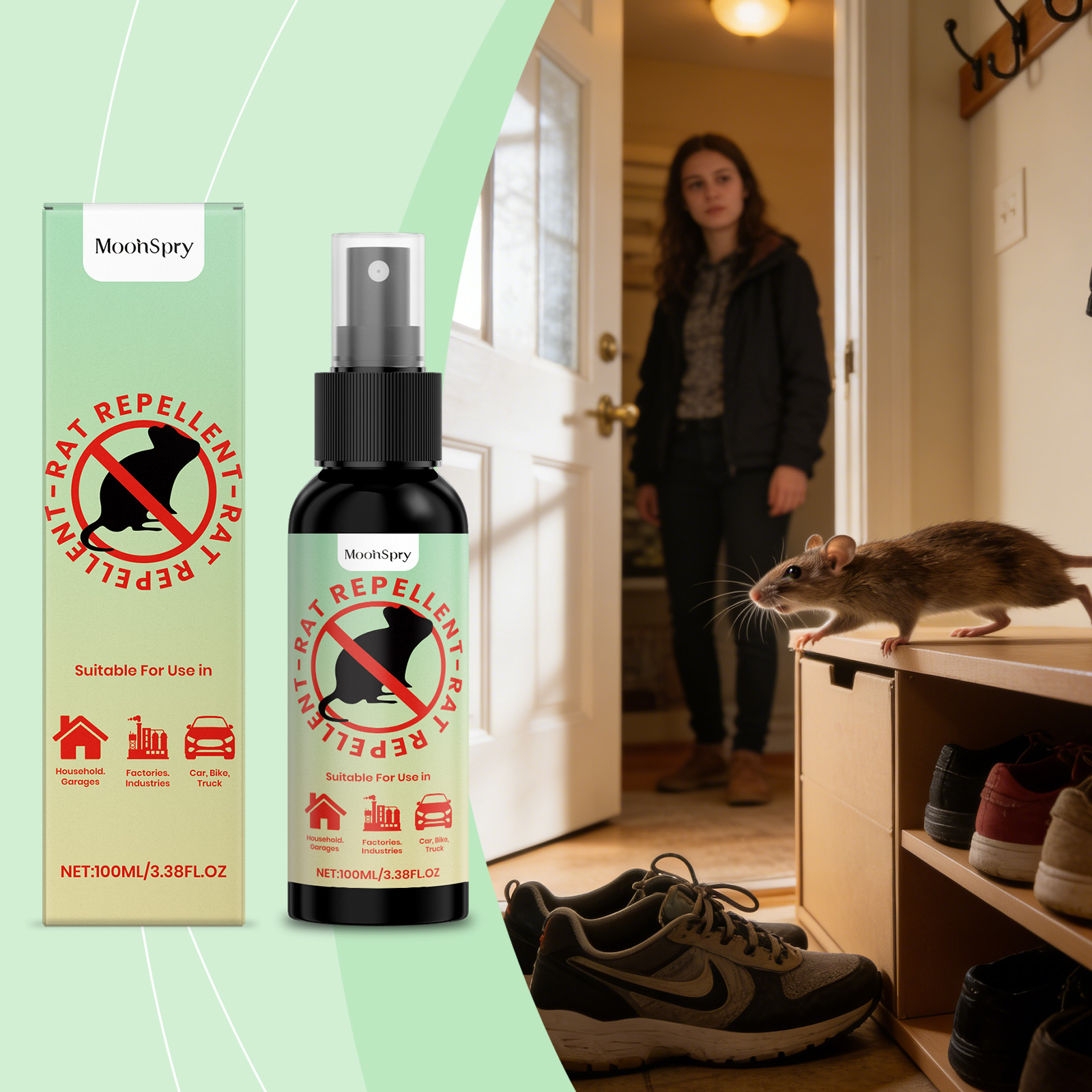 MoonSpry Rat repellent spray for home and car rat repellent, avoiding rats and preventing gnawing. Safe, convenient and suitable for multiple scenarios