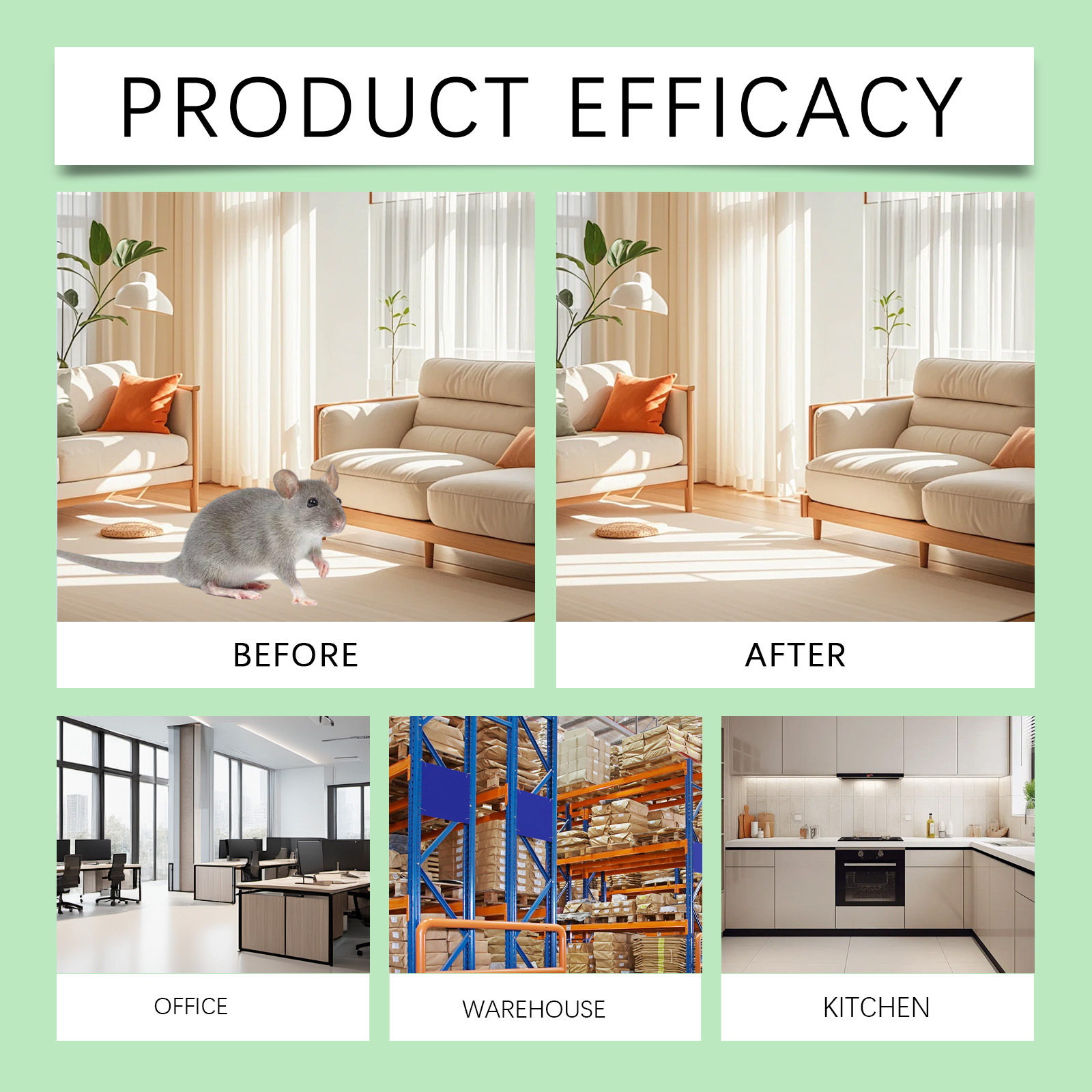 我们的驱鼠喷雾,由1,2-己二醇、姜根油精心调配而成。专为有效驱赶害虫设计。使用方法极为便捷:将此产品均匀喷洒在所需区域。该产品可用于喷洒在橱柜、阁楼、地下室或任何老鼠可能进入您家的地方,使用起来是安全的。并且适用于家庭和工业。