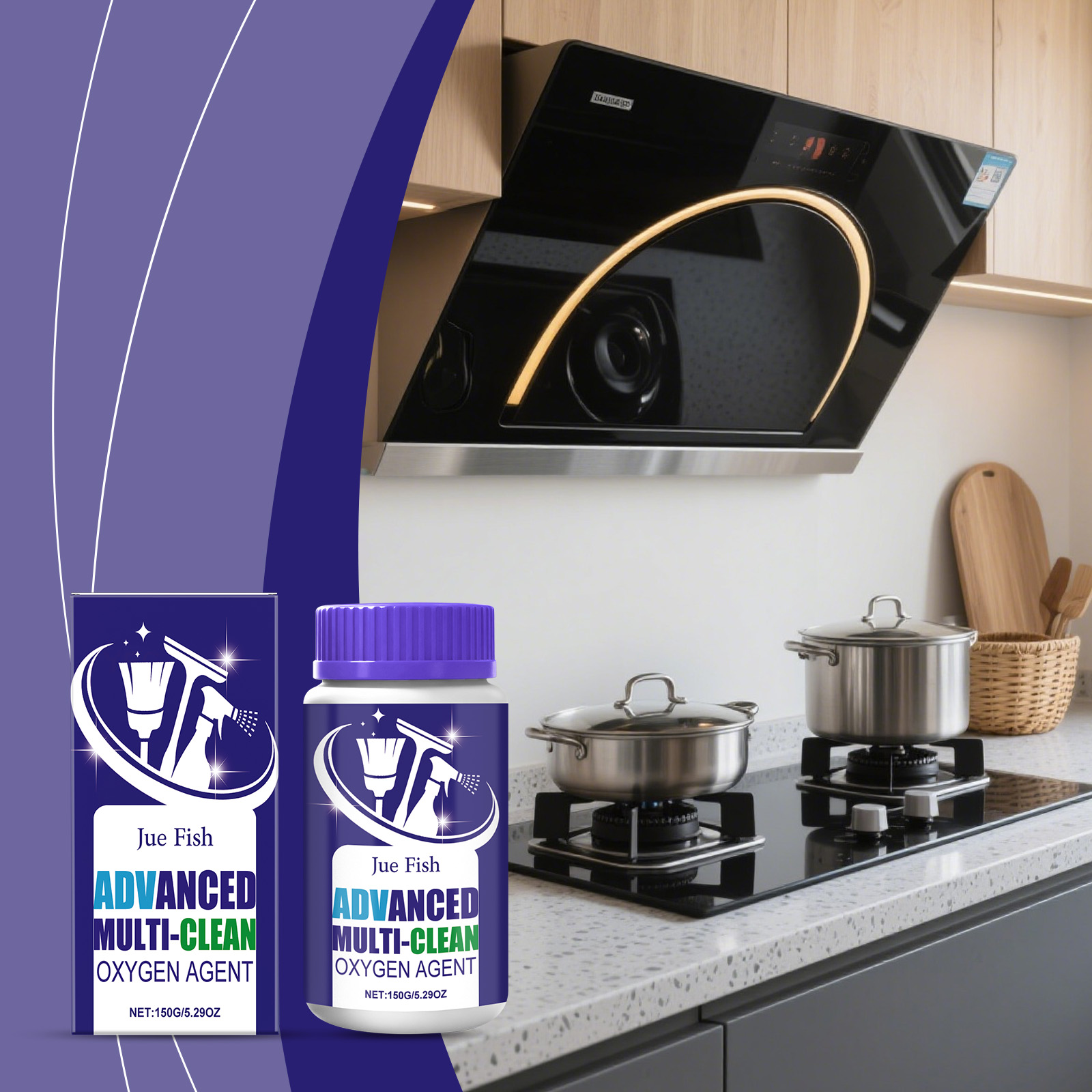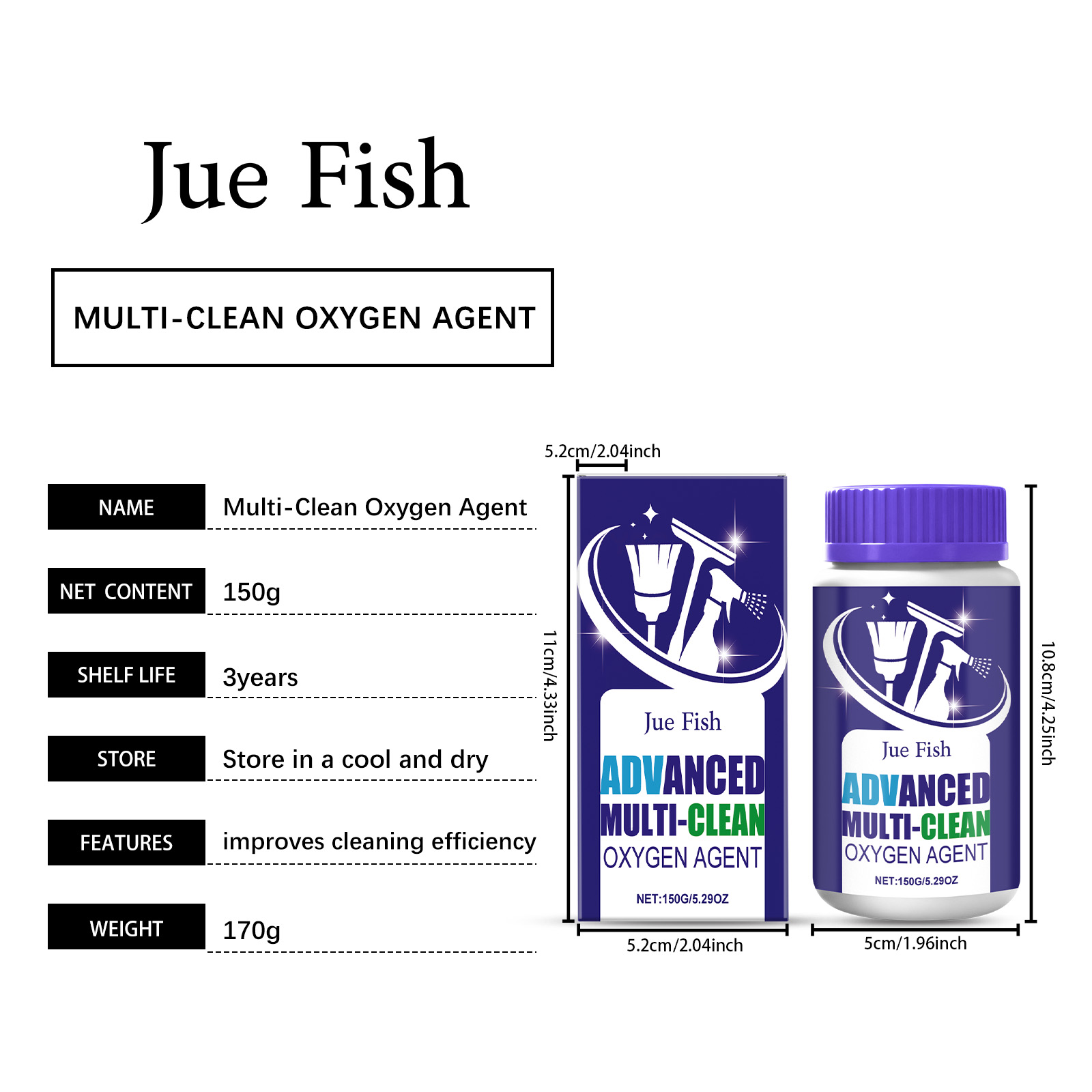 Jue Fish Multi-Purpose Cleaning Powder, Water-Soluble Toilet And Bathroom Descaling, Water Scale Management, Glaze Cleaning