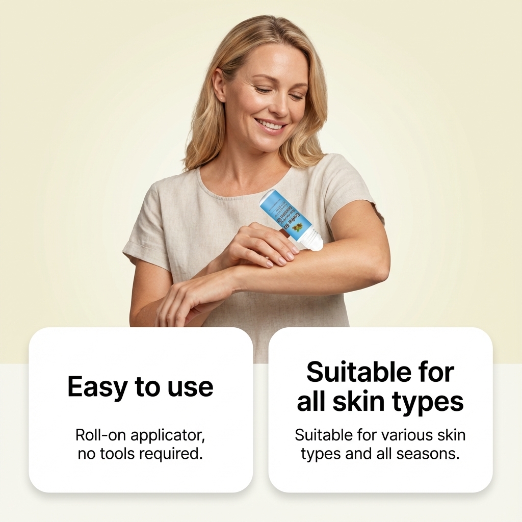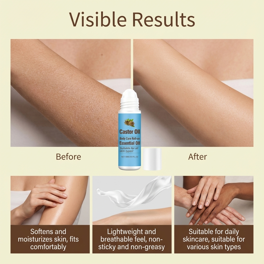 我们的身体滚珠精油,由乳香油、霍霍巴籽油精心调配而成。专为改善整体皮肤感觉设计。使用方法极为便捷:清洁并擦干皮肤。打开瓶盖,取适量产品轻轻涂抹于所需部位的皮肤上。轻轻按摩,以促进吸收。并且可以贴合皮肤,增添柔软触感。