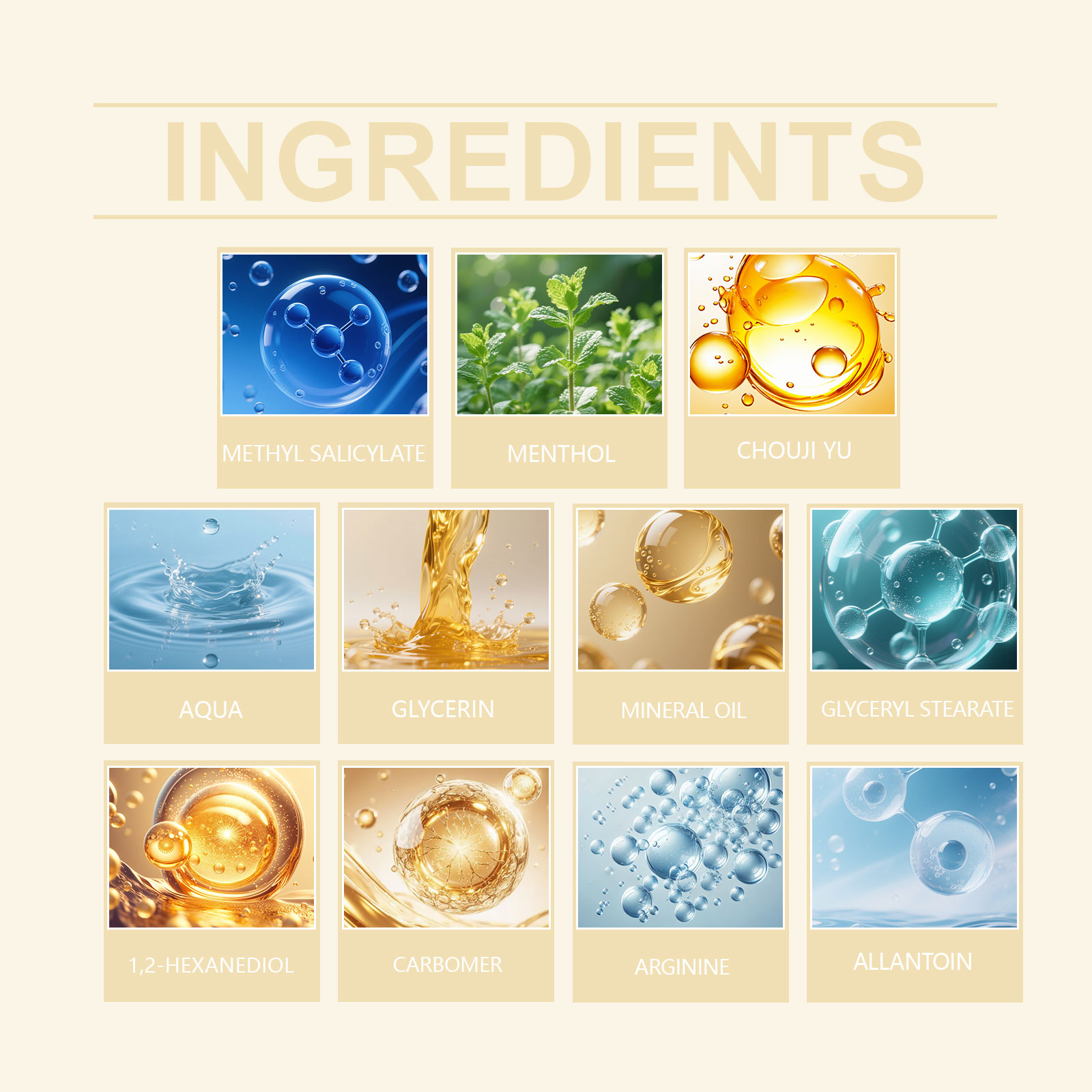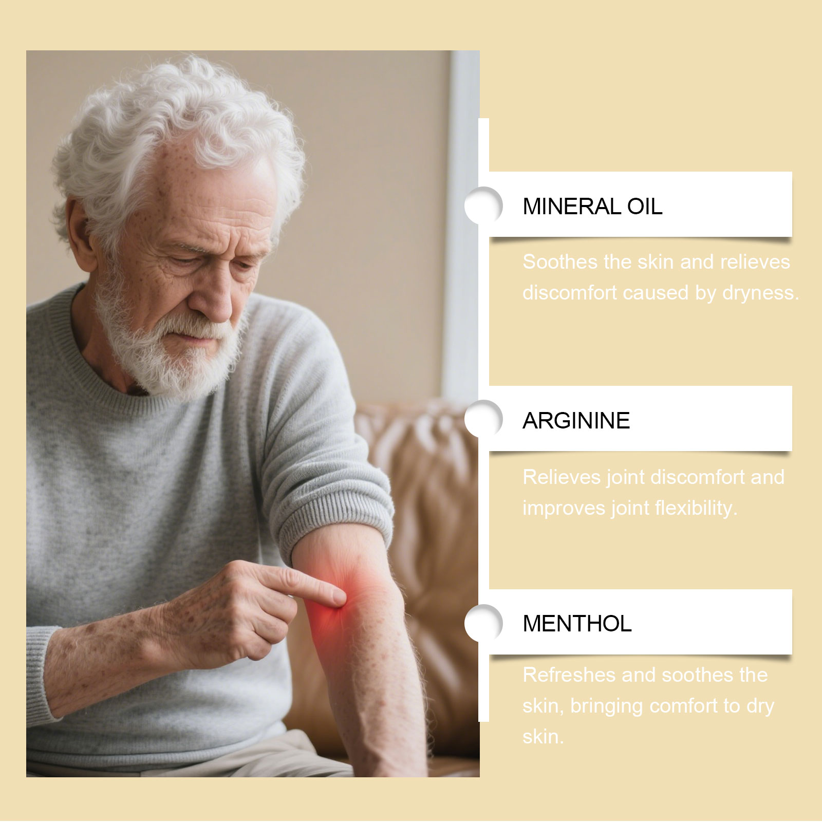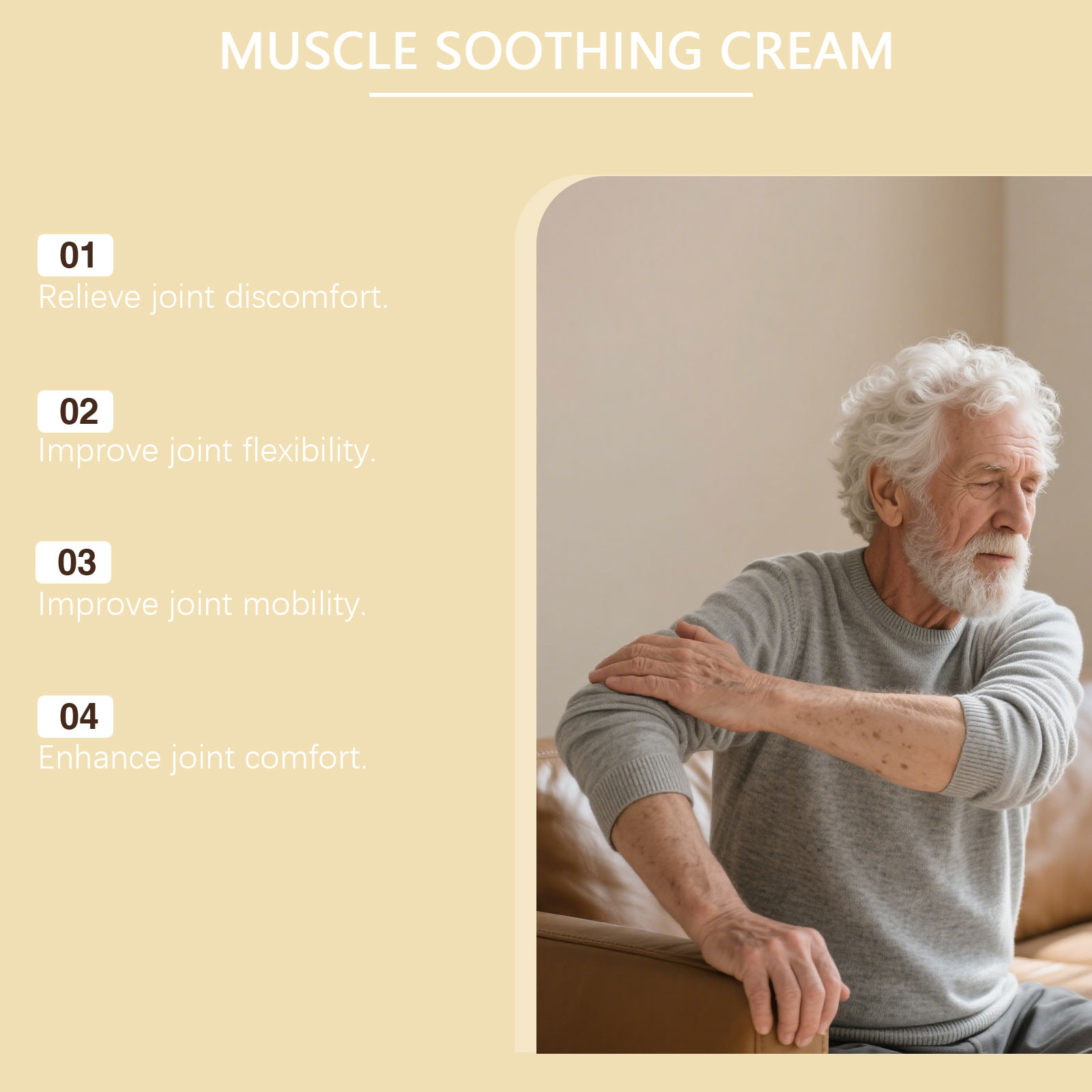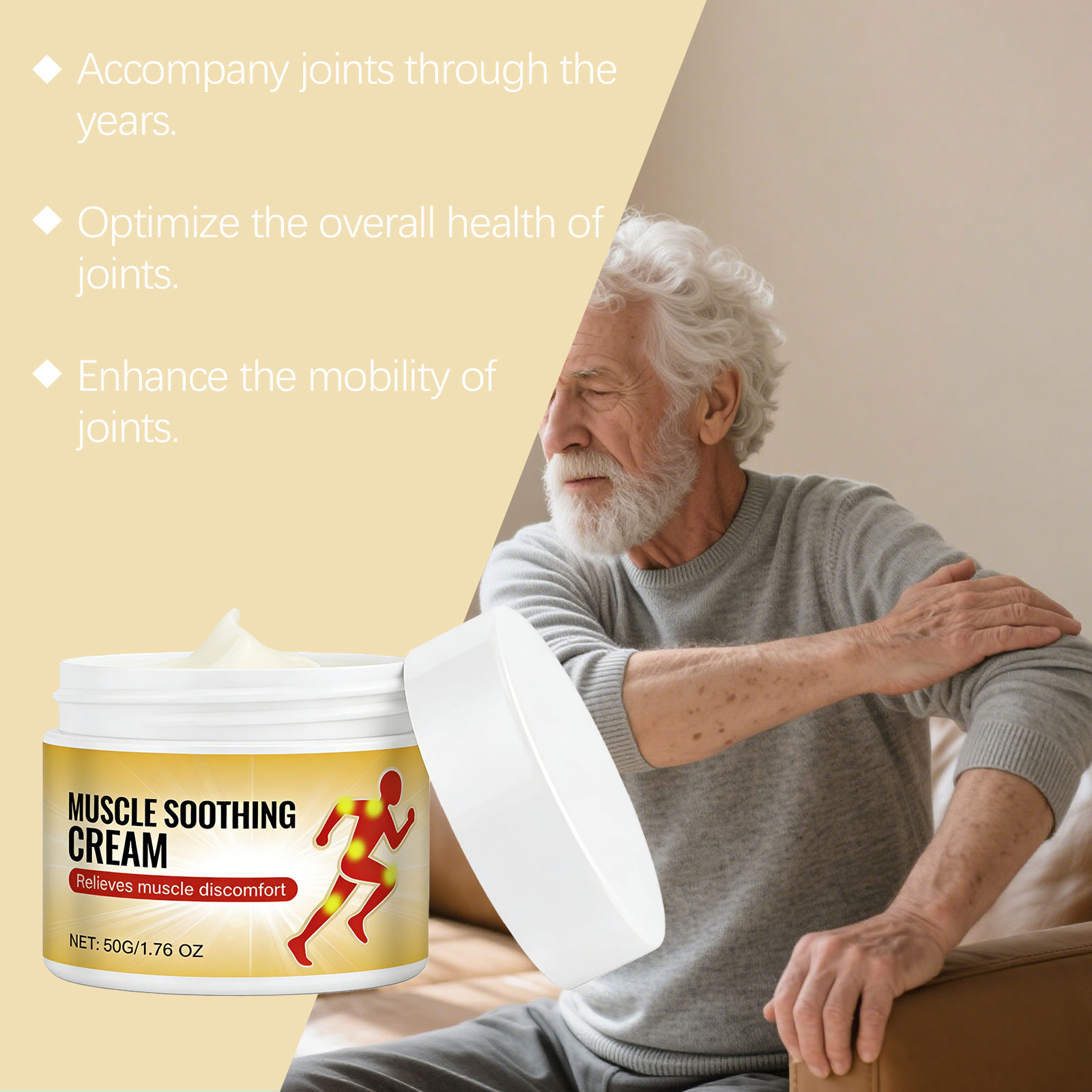 我们的身体护理霜,由1,2-己二醇、卡波姆精心调配而成。专为温和缓解关节不适设计。使用方法极为便捷:1.清洁待治疗肌肉区域的皮肤。2.取适量本品涂抹于肌肉部位,并轻轻按摩至完全吸收。并且可以帮助关节恢复灵活性。