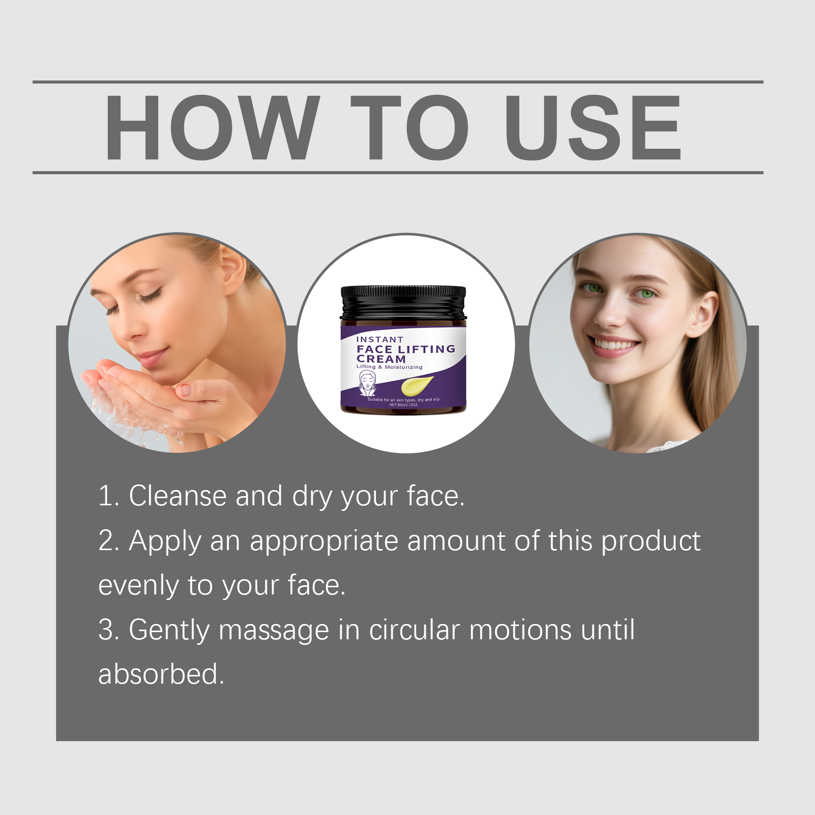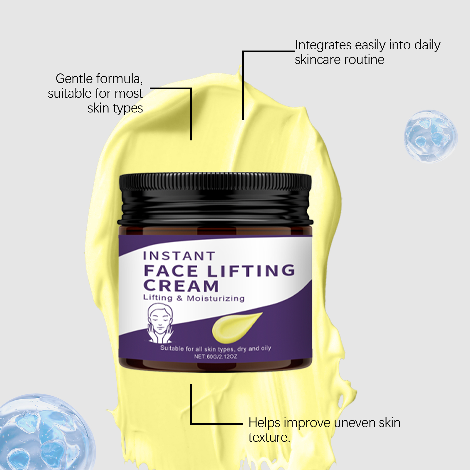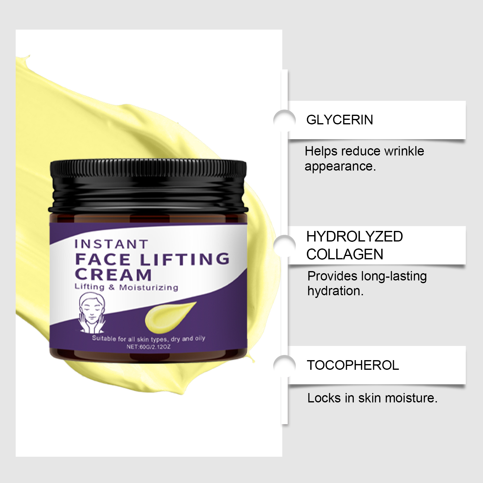 我们的保湿面霜,由稻提取物、生育酚(维生素 E)精心调配而成。专为减少皱纹外观设计。使用方法极为便捷:1.清洁并擦干面部。2.将适量本产品均匀涂抹于面部。3.轻柔地以打圈方式按摩,直至完全吸收。并且可以全天候保湿肌肤,使肌肤感觉柔软和光滑。
