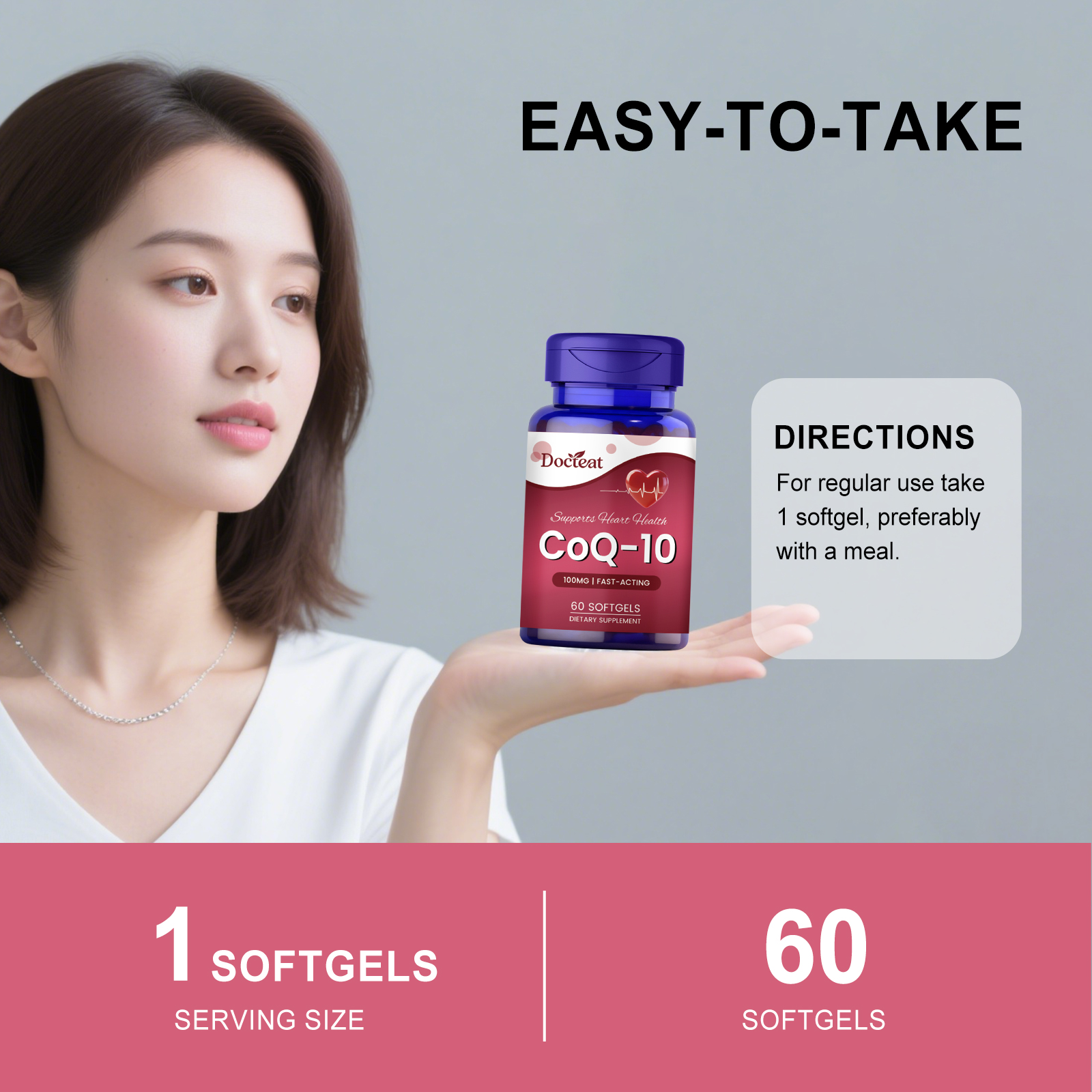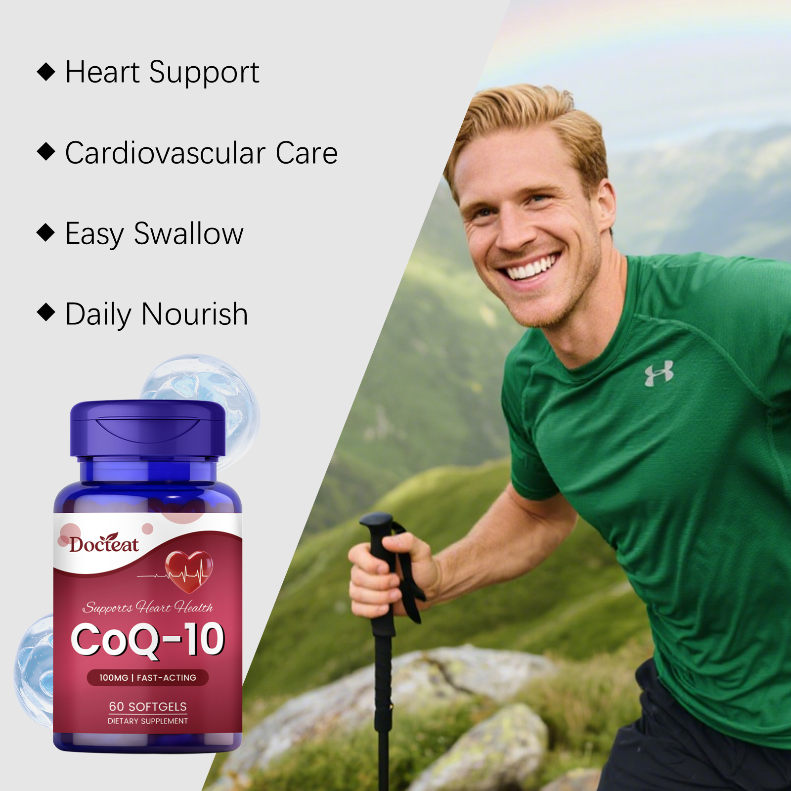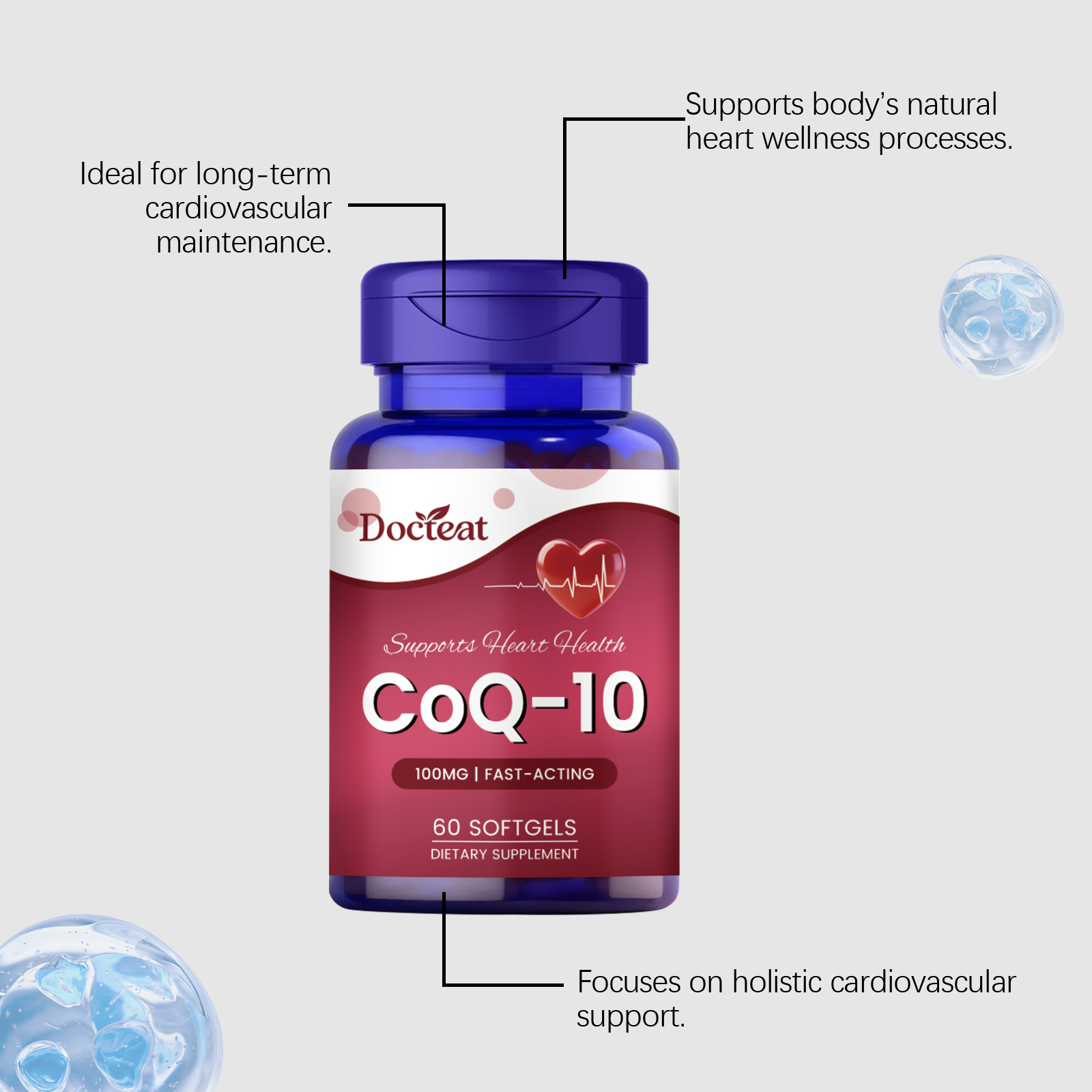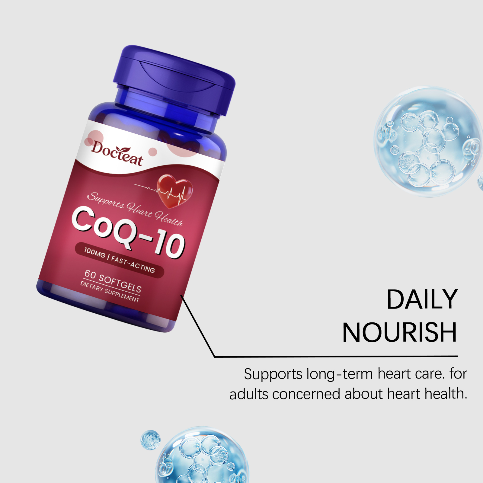 我们的身体护理胶囊,由维生素E(d-α-生育酚)、辅酶Q10(泛醌)精心调配而成。专为支持正常的血脂水平,维护心血管健康设计。使用方法极为便捷:日常服用,每次服用1粒软胶囊,最好随餐服用。并且它可以保护心肌细胞免受氧化应激损伤。