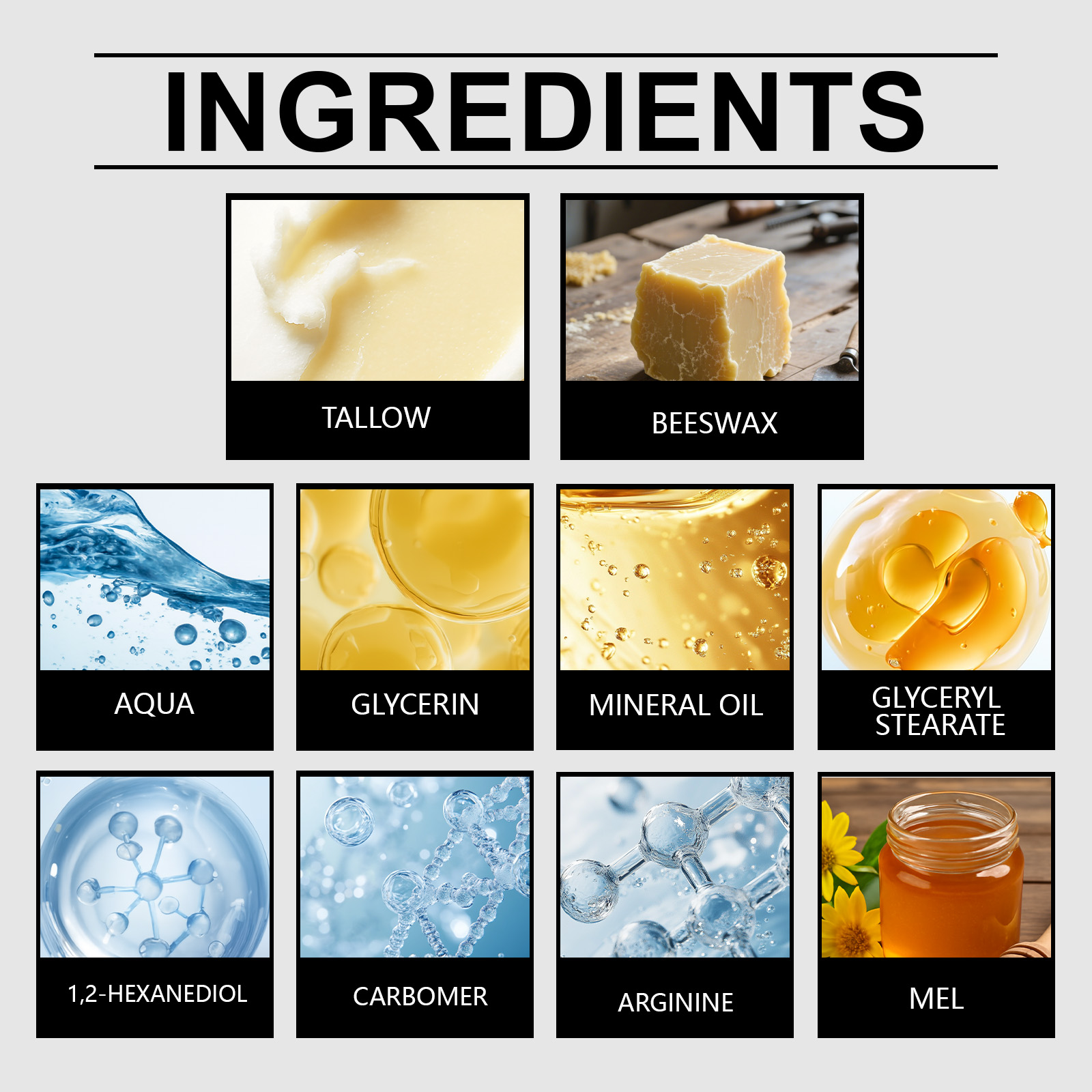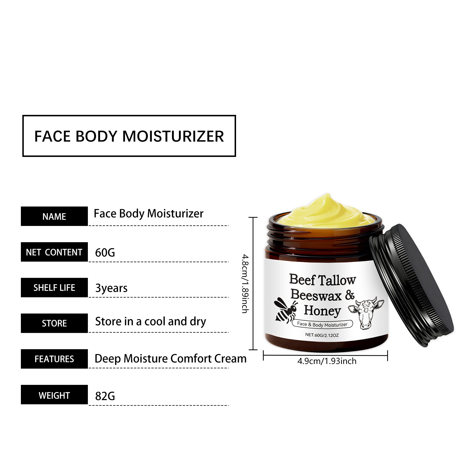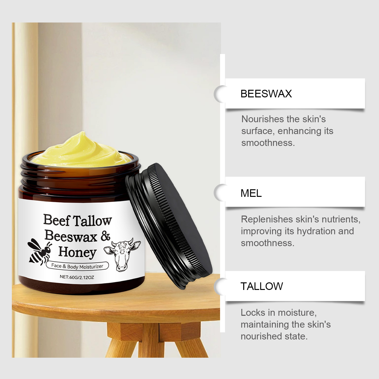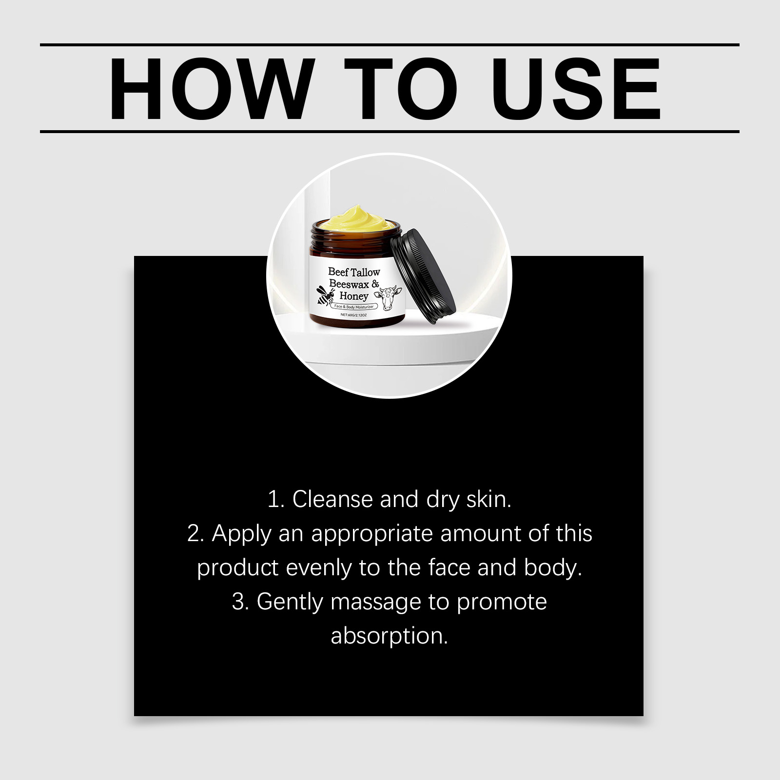 我们的牛脂保湿霜,由牛脂、蜂蜡精心调配而成。专为深层补充肌肤水分设计。使用方法极为便捷:1.清洁并擦干皮肤。2.将适量本产品均匀涂抹于面部和身体。3.轻柔按摩,以促进吸收。并且适合各种肤质,使日常使用更安全。