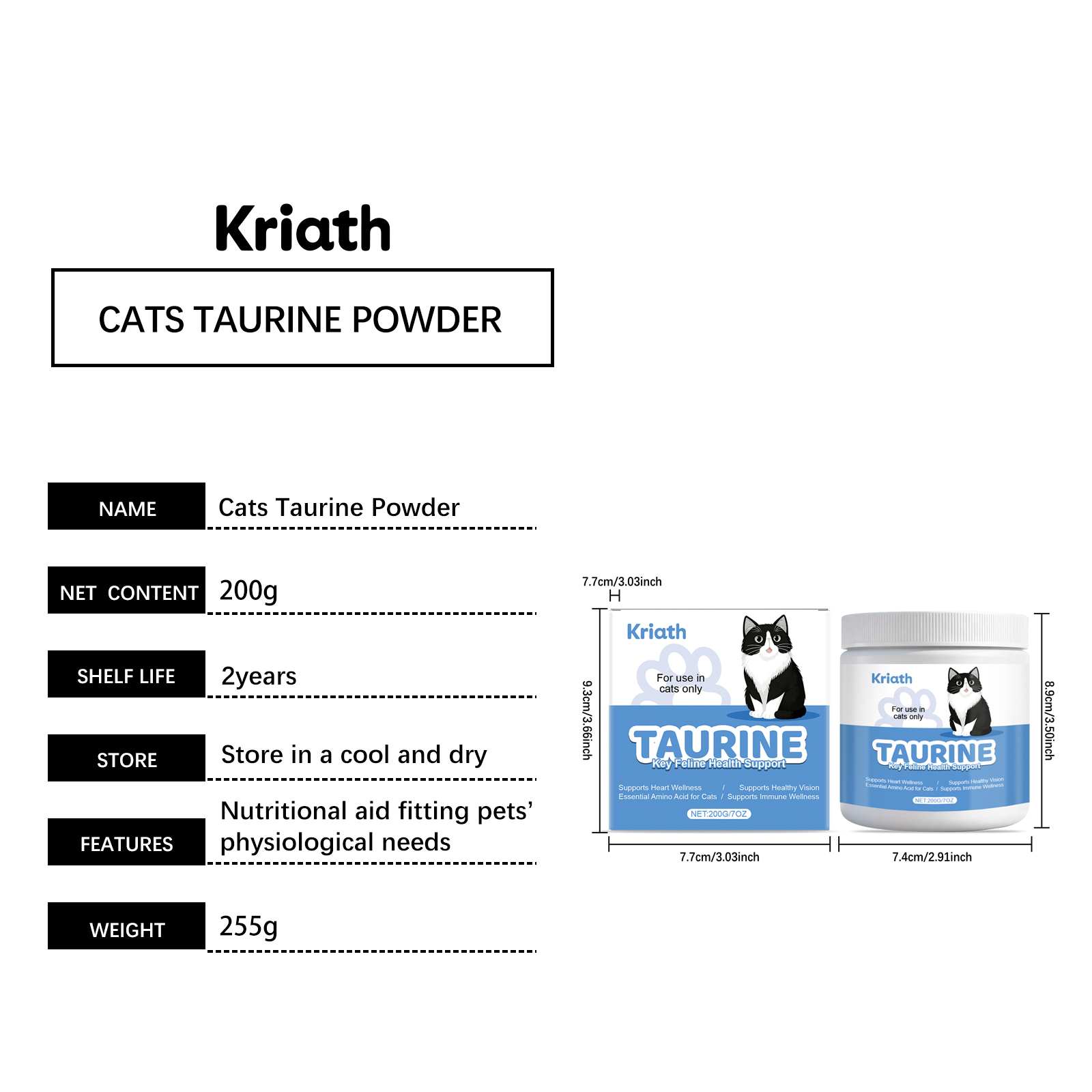 Kriath Cat Taurine Powder With A Gentle Formula Is A Daily Care And Nutrition Powder For Comfortable Pet Bodies