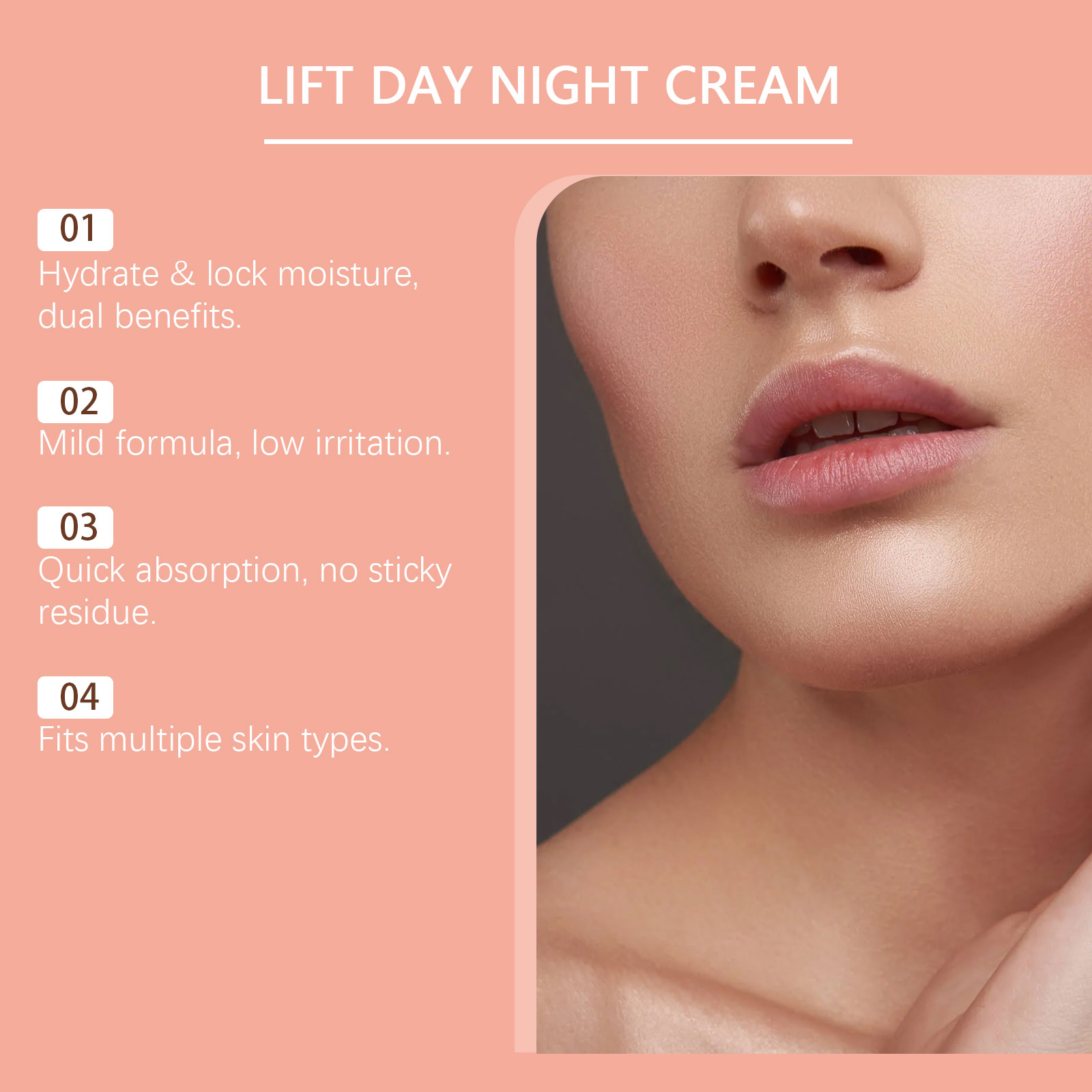 我们的弹嫩保湿面霜,由生育酚(维生素E)、水解胶原精心调配而成。专为全天候保持皮肤水分设计。使用方法极为便捷:1.清洁并擦干面部。2.将适量本产品均匀涂抹于面部。3.轻柔按摩,以促进吸收。并且可以适合敏感面部肌肤。