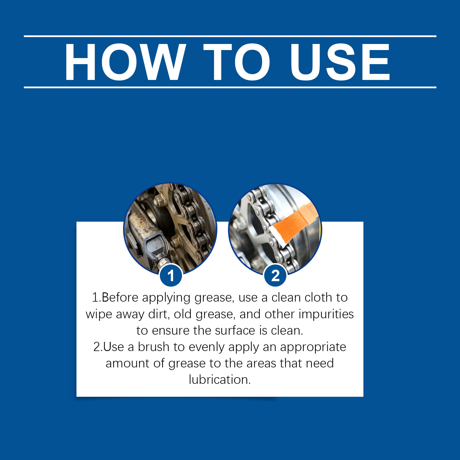 我们的多用途白色锂基润滑脂,由蜂蜡, 油酸精心调配而成。专为提供基本润滑,减少摩擦和磨损,并提高机械部件的运行效率设计。使用方法极为便捷:1.在涂抹润滑脂之前,使用干净的布擦拭掉污垢、旧油脂和其他杂质,以确保表面清洁。2.使用刷子将适量润滑脂均匀涂抹在需要润滑的区域。并且可以稳定润滑结构,延长使用寿命并防止损耗。