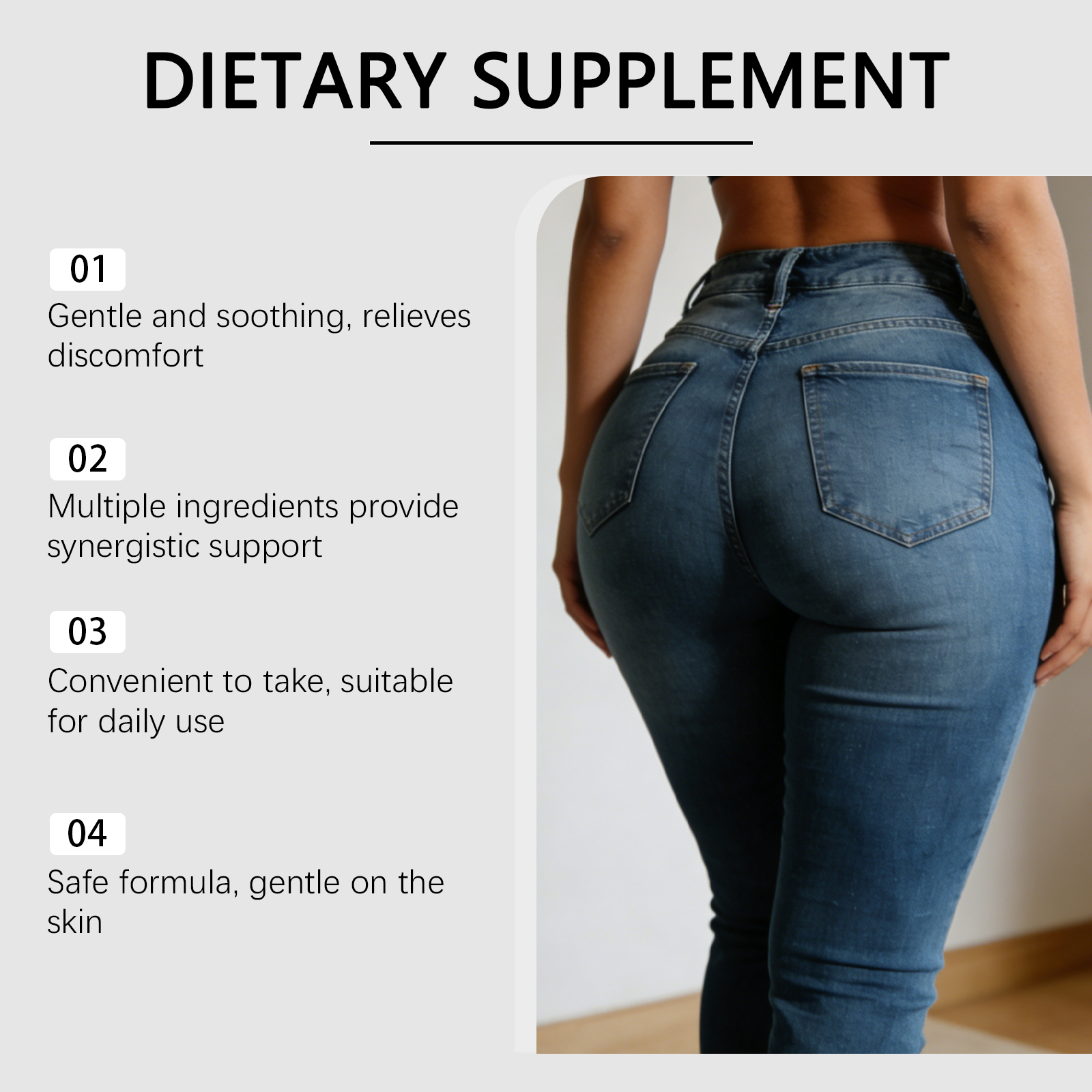 我们的膳食补充剂,由维生素C(抗坏血酸)、葡萄糖酸锌精心调配而成。专为强化血管,提升血液循环,缓解疼痛,减轻炎症设计。使用方法极为便捷:一天一次1粒,整片吞服。并且它可以提升舒适,健康支持,缓解不适,提升舒适。