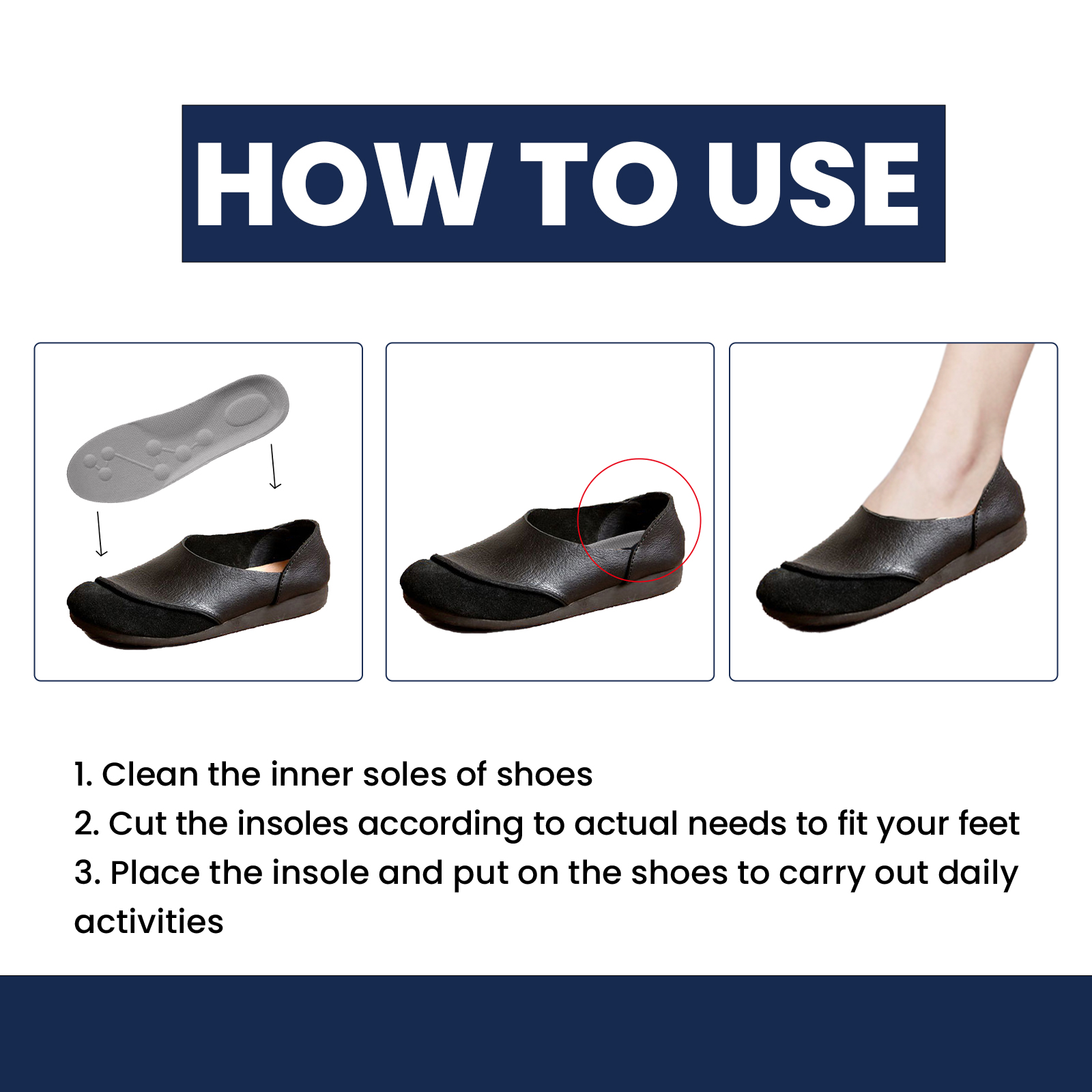 我们的矫形运动鞋垫含有TPU, PU。它可以帮助减少脚和关节的负担,保护您的脚免受不必要的伤害。它的使用方法很简单:清洁鞋内底部,根据实际需要裁剪鞋垫,放置鞋垫,穿上鞋子进行日常活动即可。可以让您的脚在剧烈运动或长期穿着的情况下也能保持凉爽、干燥。