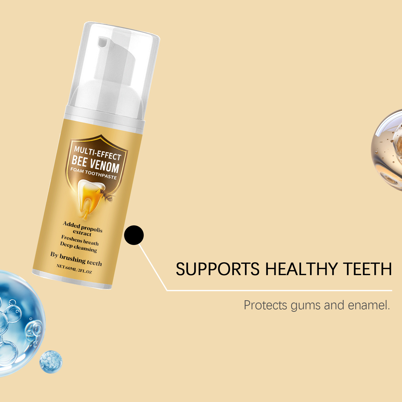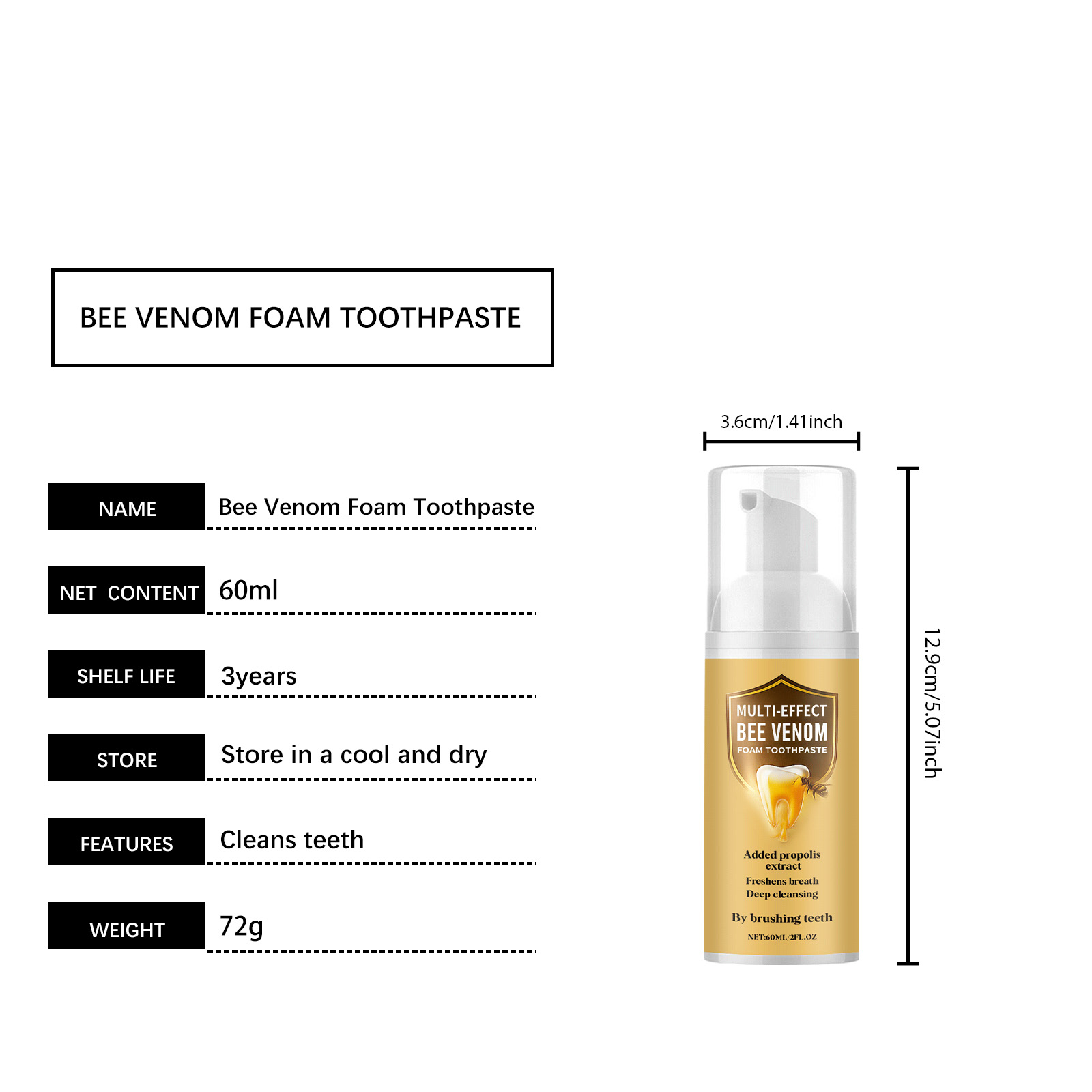 AMZ Bee Venom Tooth Cleaning Mousse Gently Cleanses And Cares For Bright Teeth. Press-Type Design Oral Daily Care Toothpaste
