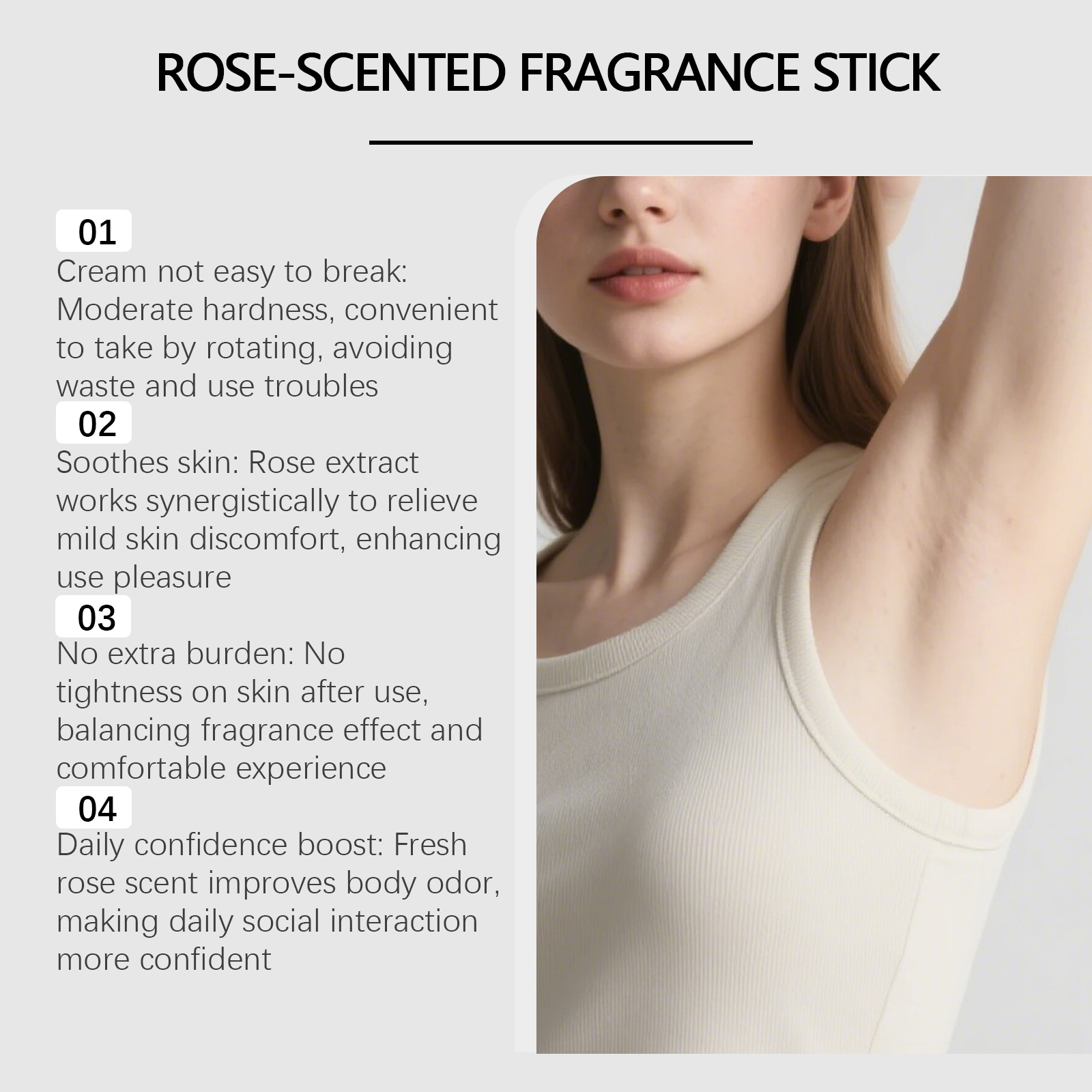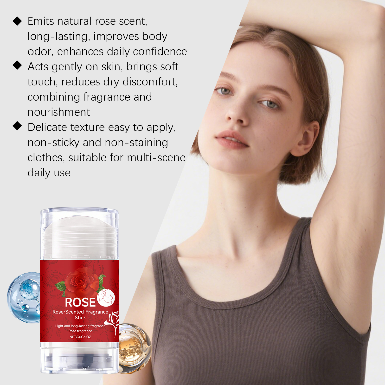 AMZ The Rose-Scented Body Stick Gently Cares For The Armpits, Providing A Comfortable, Refreshing And Non-Sticky Feeling. It Is Portable And Easy To Apply, Leaving A Fresh, Natural And Lingering Fragrance