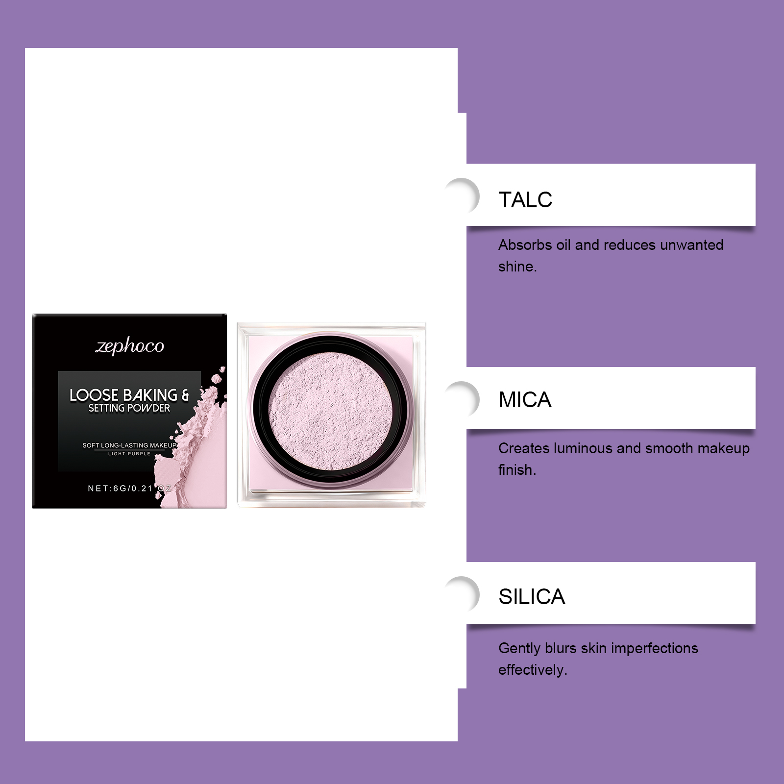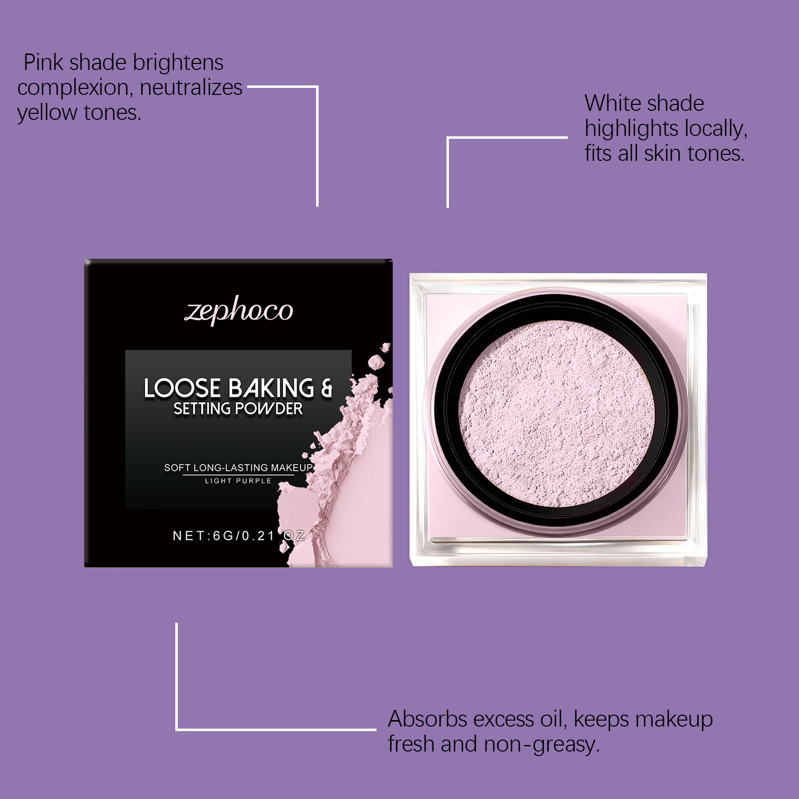 zephoco Light Purple Soft And Smooth Setting Powder Is Light, Soft And Focused, Adheres Well, Is Fine And Clear, And Shows Color