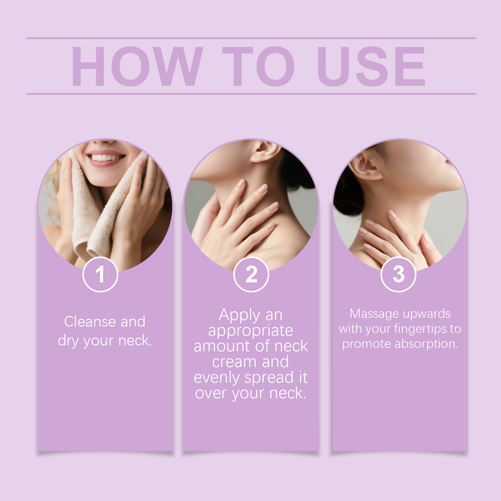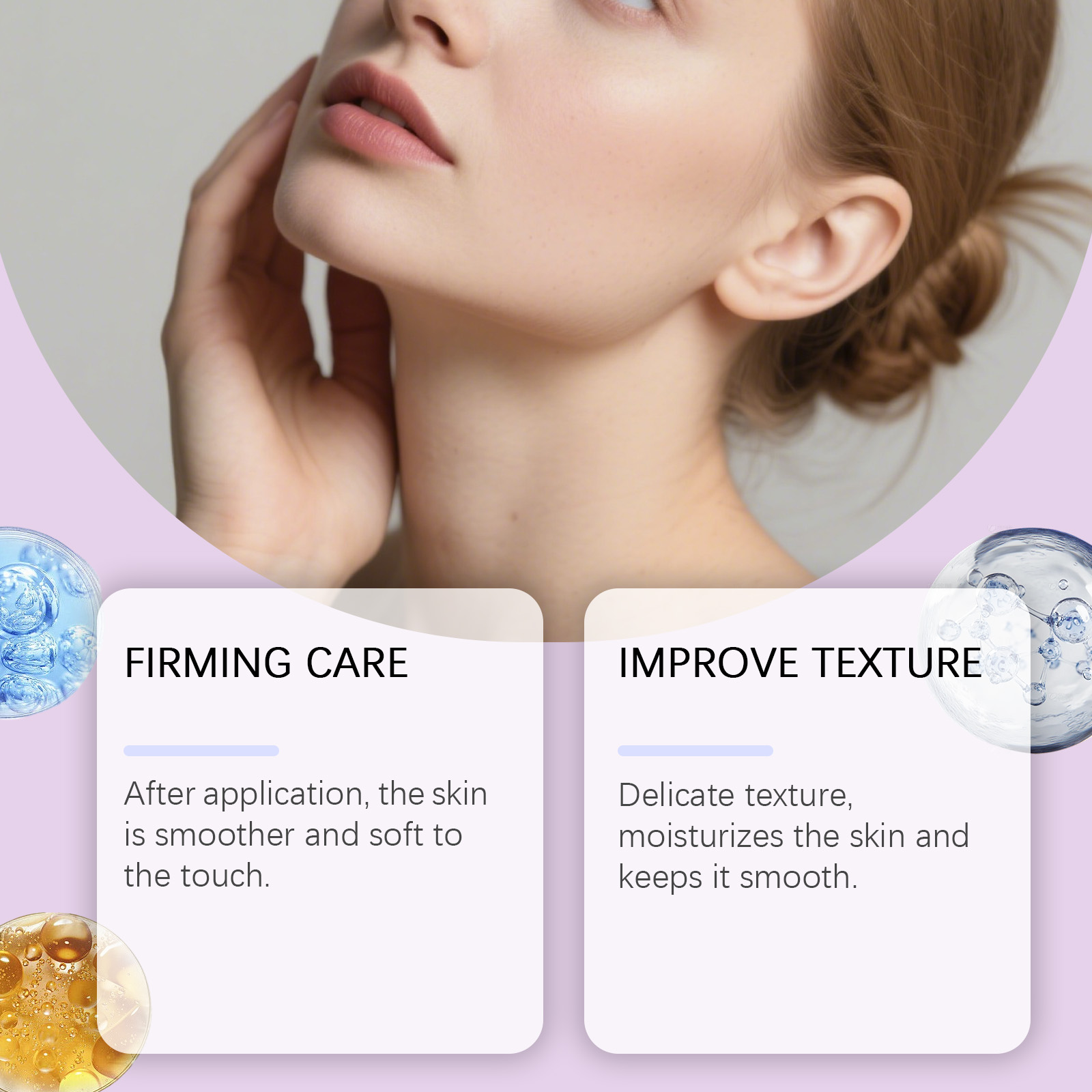 我们的保湿颈霜,由水解胶原、生育酚(维生素E)精心调配而成。专为滋润皮肤并使其触感柔软设计。使用方法极为便捷:清洁并擦干颈部。取适量颈霜,均匀涂抹于颈部。用指尖向上按摩,以促进吸收。并且可以温和滋养,保持肌肤光滑。