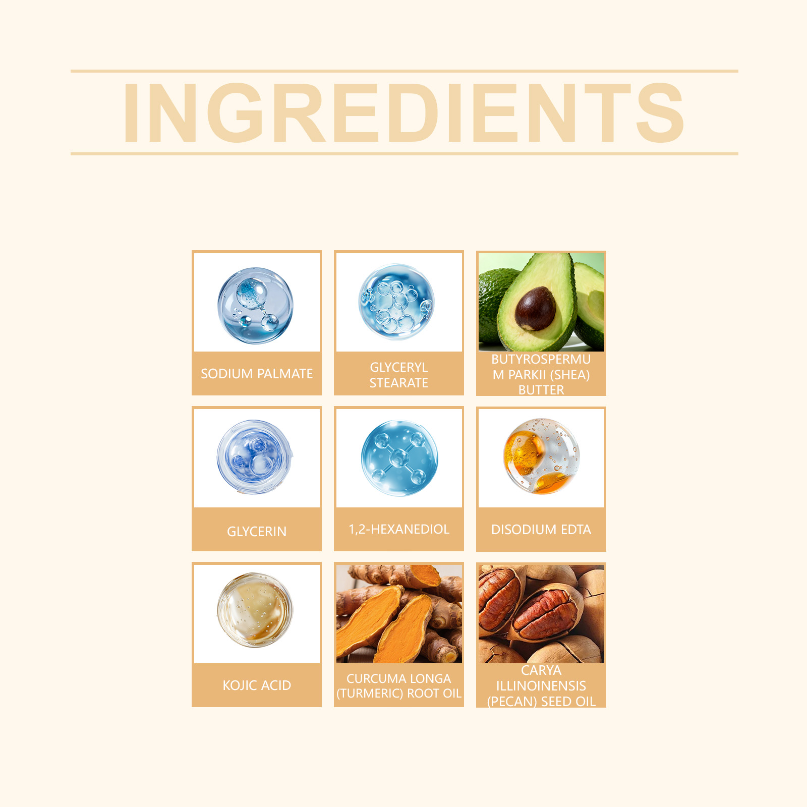 我们的姜黄焕彩皂,由姜黄根油、山核桃籽油精心调配而成。专为促进均匀、有光泽的肤色设计。使用方法极为便捷:1.先将皮肤打湿,然后涂抹肥皂。2.用泡沫彻底清洁,然后用水冲洗干净。并且可以支持受损的皮肤。