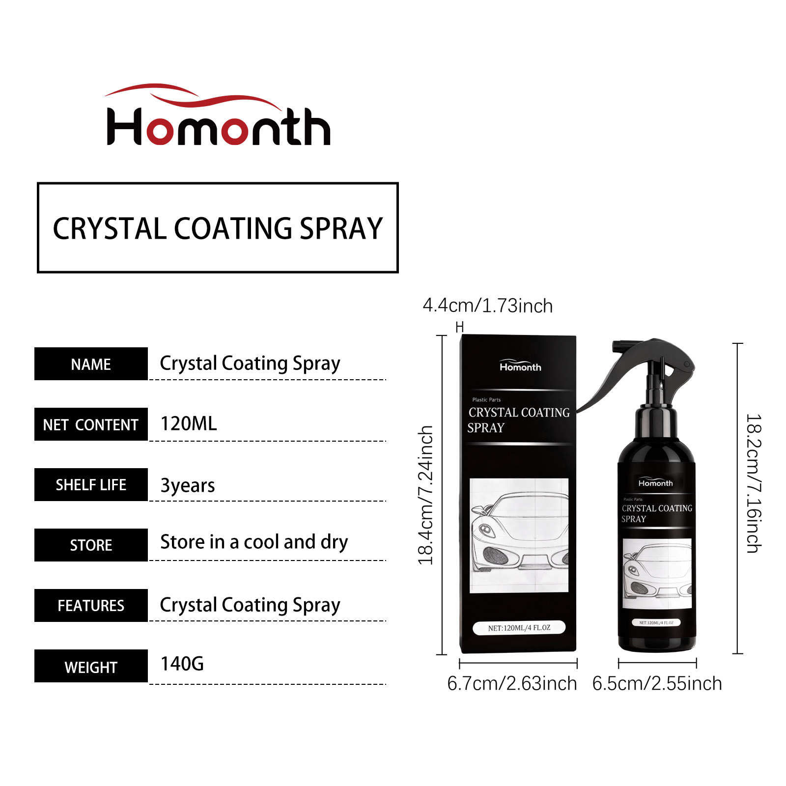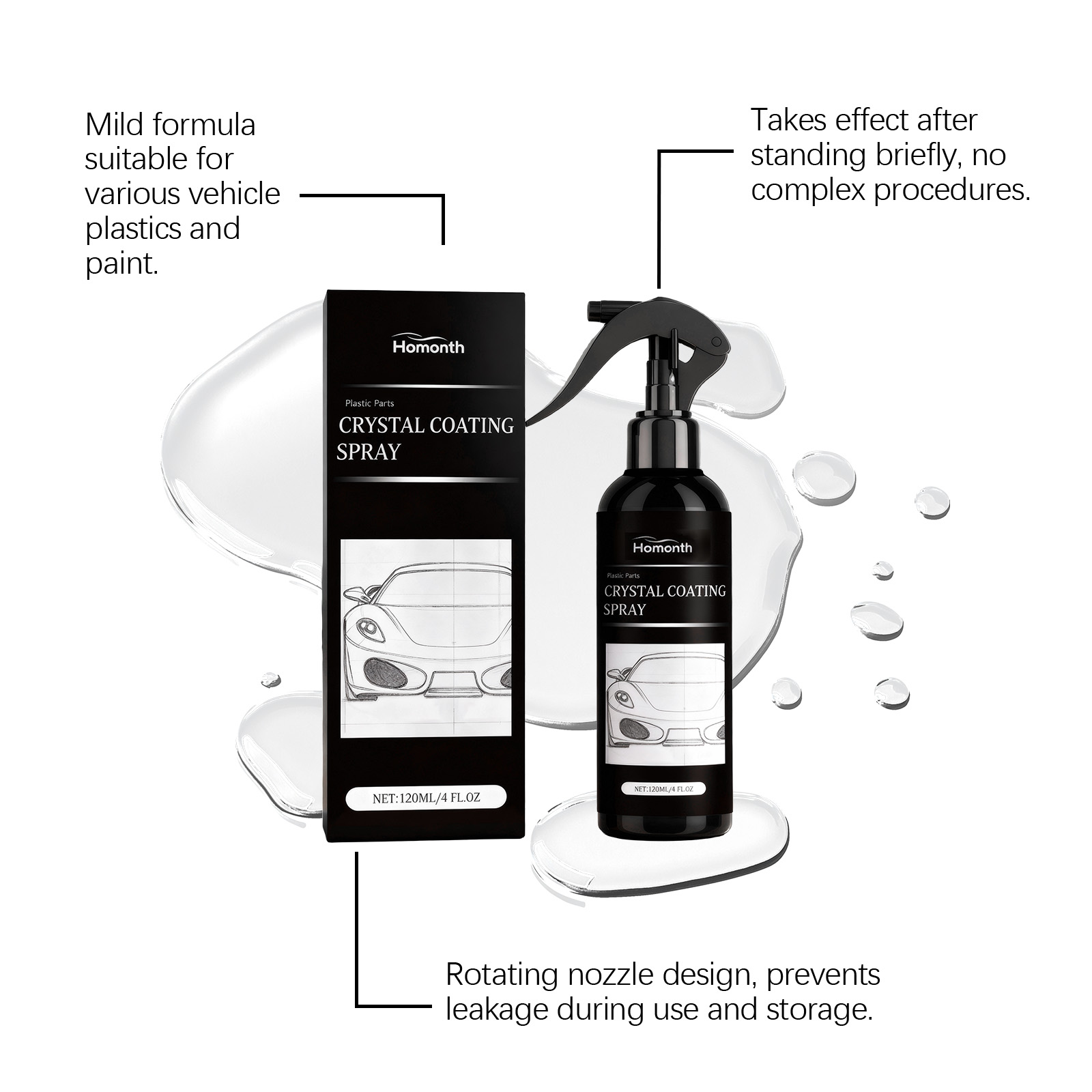 Homonth Automobile Paint Coating Agent, Hydrophobic, Anti-Fouling, Gloss, Daily Refurbishment, Paint Surface Coating And Maintenance Agent