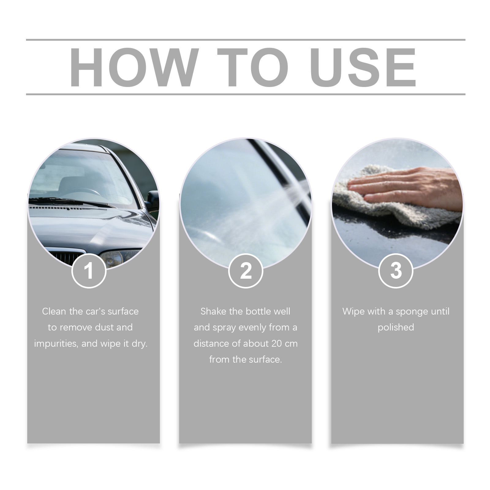 我们的汽车喷漆涂层剂,由乙烯共聚物 、1,2-己二醇精心调配而成。专为轻松恢复车辆原有的明亮质感设计。使用方法极为便捷:清洁汽车表面,以去除灰尘和杂质,并擦干。充分摇匀瓶子,并从距离表面约20厘米处均匀喷洒。用海绵擦拭直至抛光。并且采用旋转喷嘴设计,防止使用和存放时泄漏。