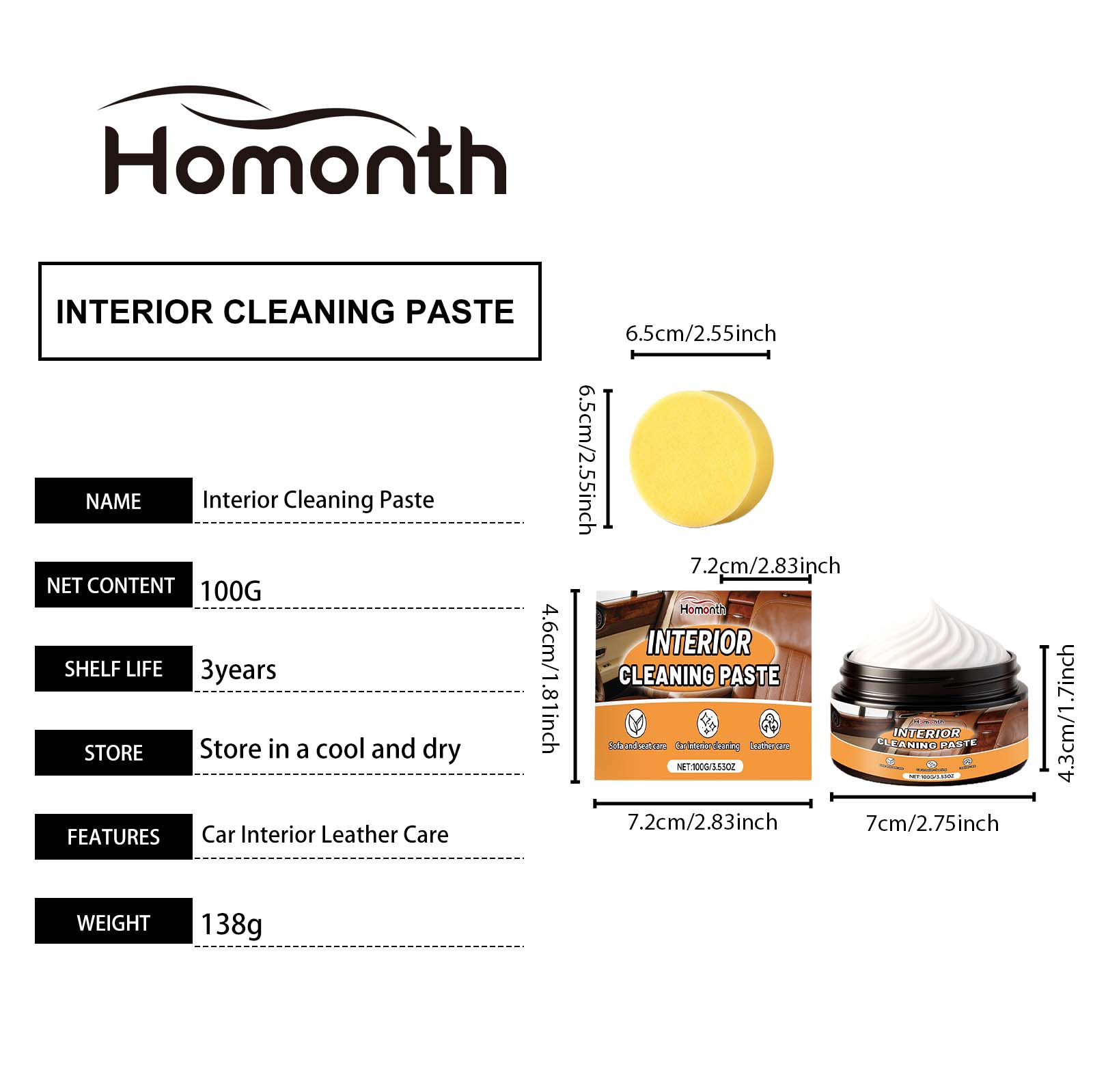 Homonth Multi-Purpose Car Leather Cleaner, Daily Cleaning Of Car Interiors, Sofa And Seat Care Agent