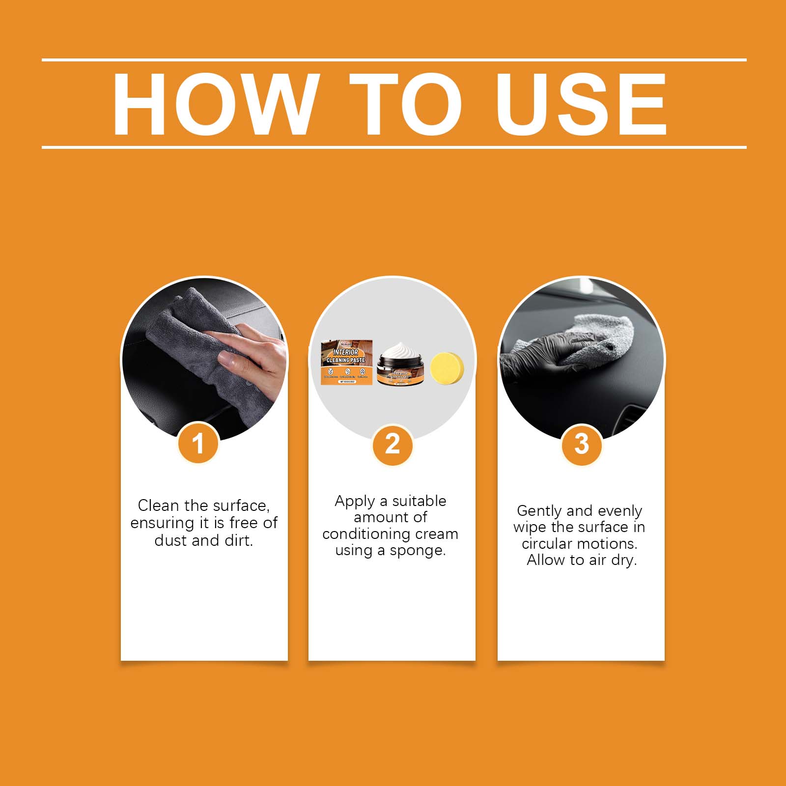 我们的多用途汽车皮革清洁剂,由癸基葡糖苷、1,2-己二醇精心调配而成。专为深入渗透皮革纹理补充必需营养设计。使用方法极为便捷:清洁表面,确保无灰尘和污垢。使用海绵涂抹适量护发霜。以打圈方式轻柔均匀擦拭表面,然后自然风干。并且可以形成保护膜,以抵御外部侵害。