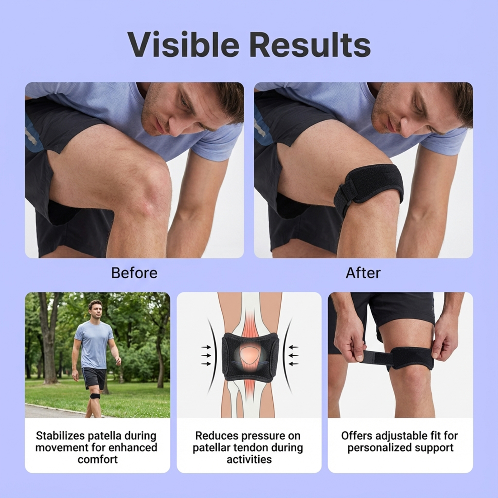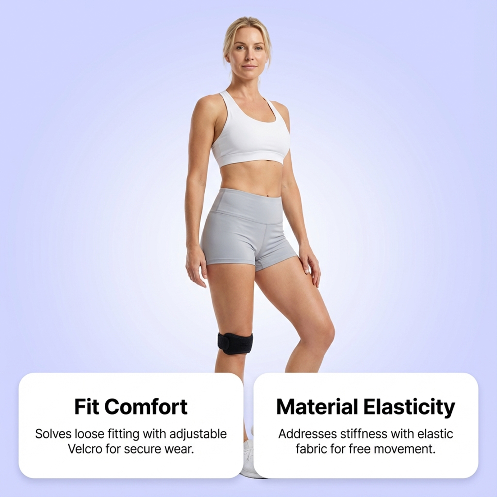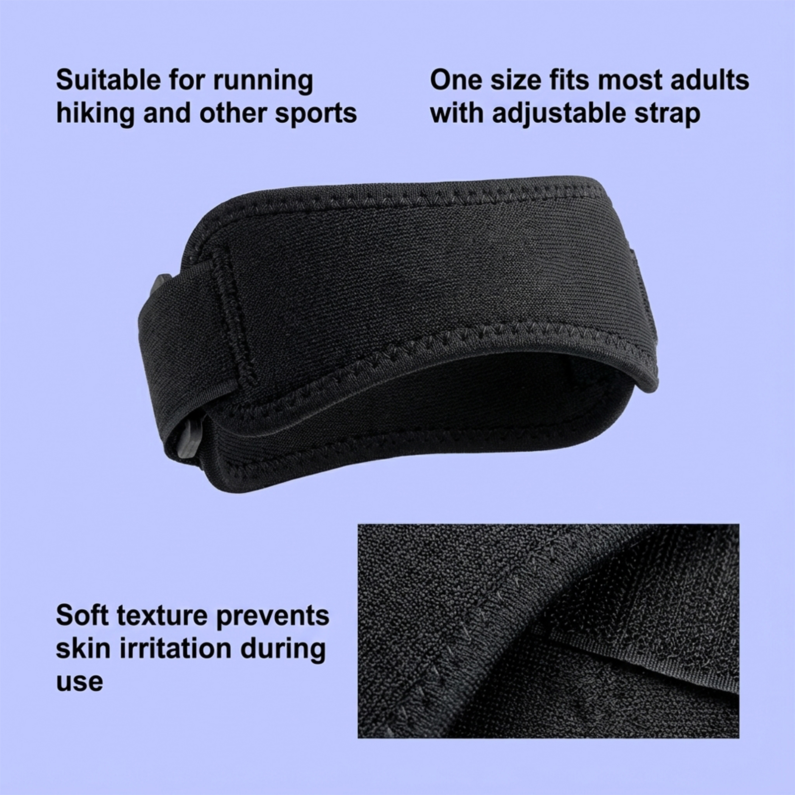 我们的运动护带,由涤纶精心制作而成。专为通过可调节魔术贴解决宽松穿着问题确保佩戴稳固,通过弹性面料解决僵硬问题,实现自由活动设计。使用方法极为便捷:将支撑带与膝盖以下的髌骨肌腱对齐,将其包裹在小腿周围并用魔术贴固定。使用可调节扣调节紧度,直到它适合舒适,并允许无限制的运动。并且它可以解决运动中的不稳定问题。