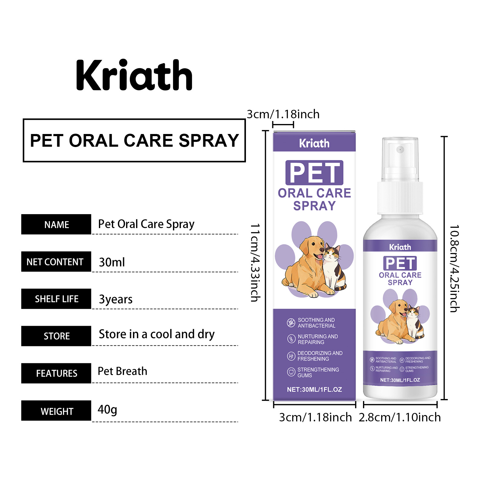 Kriath Pet Dental Care Spray Gently Cleans Pet Teeth And Freshens Breath. Daily Care Spray