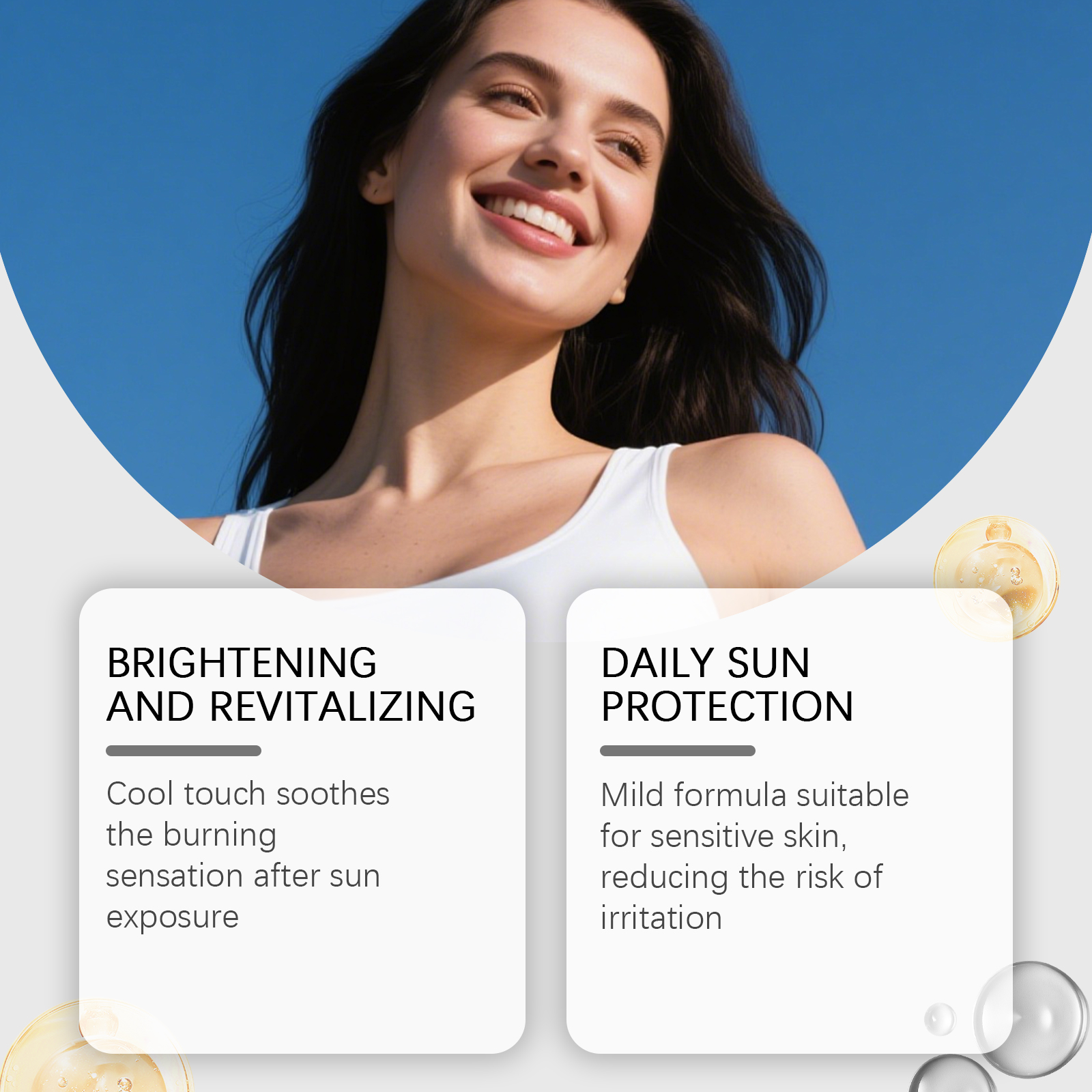 我们的青柠焕亮防护精华,由二氧化钛、烟酰胺精心调配而成。专为舒缓日晒后的灼热感设计。使用方法极为便捷:1.清洁身体并保持干燥。2.将适量本产品均匀涂抹于身体。3.轻柔按摩直至吸收。并且涂抹后迅速吸收,无需重复使用。使用后感觉清爽透气,没有任何沉重感。